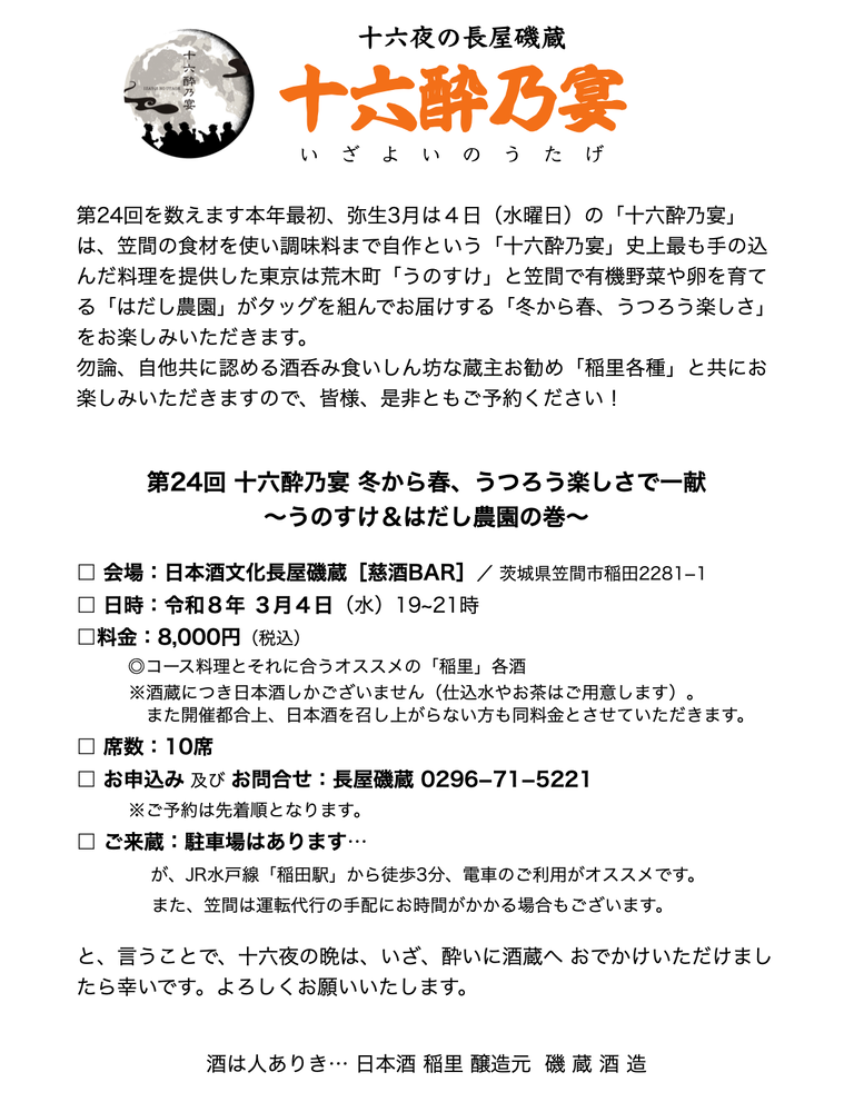 令和8年 「十六酔乃宴」出宴者募集しますっ!