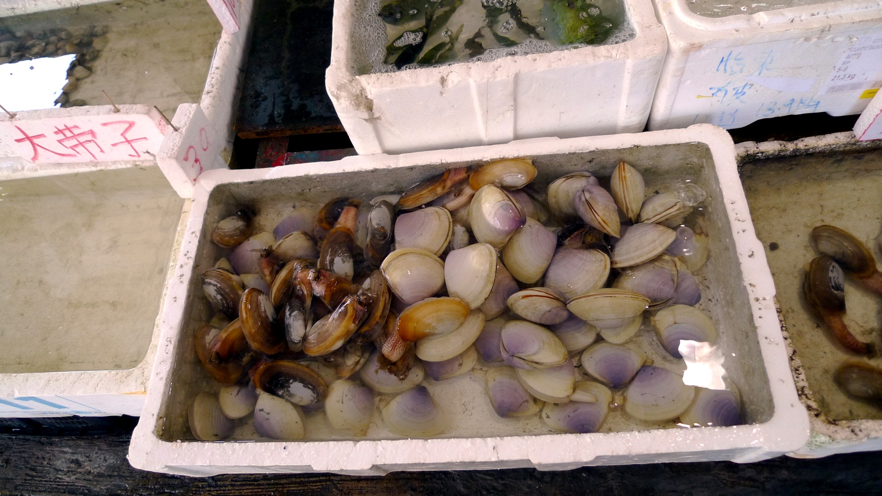 埠頭の入口には海産物を売る店が並び