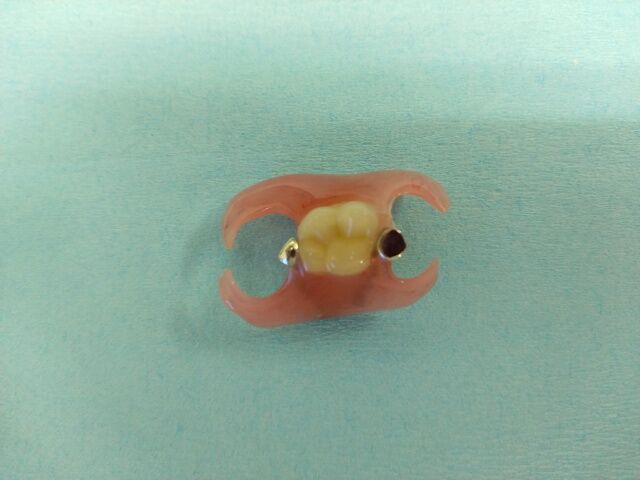 (見えない所には、義歯沈下防止のため金属レストという爪をつけることはある)