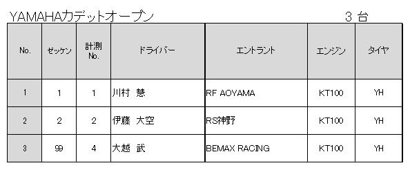 それではレースのピット割り&エントリーリストをお知らせ致します。