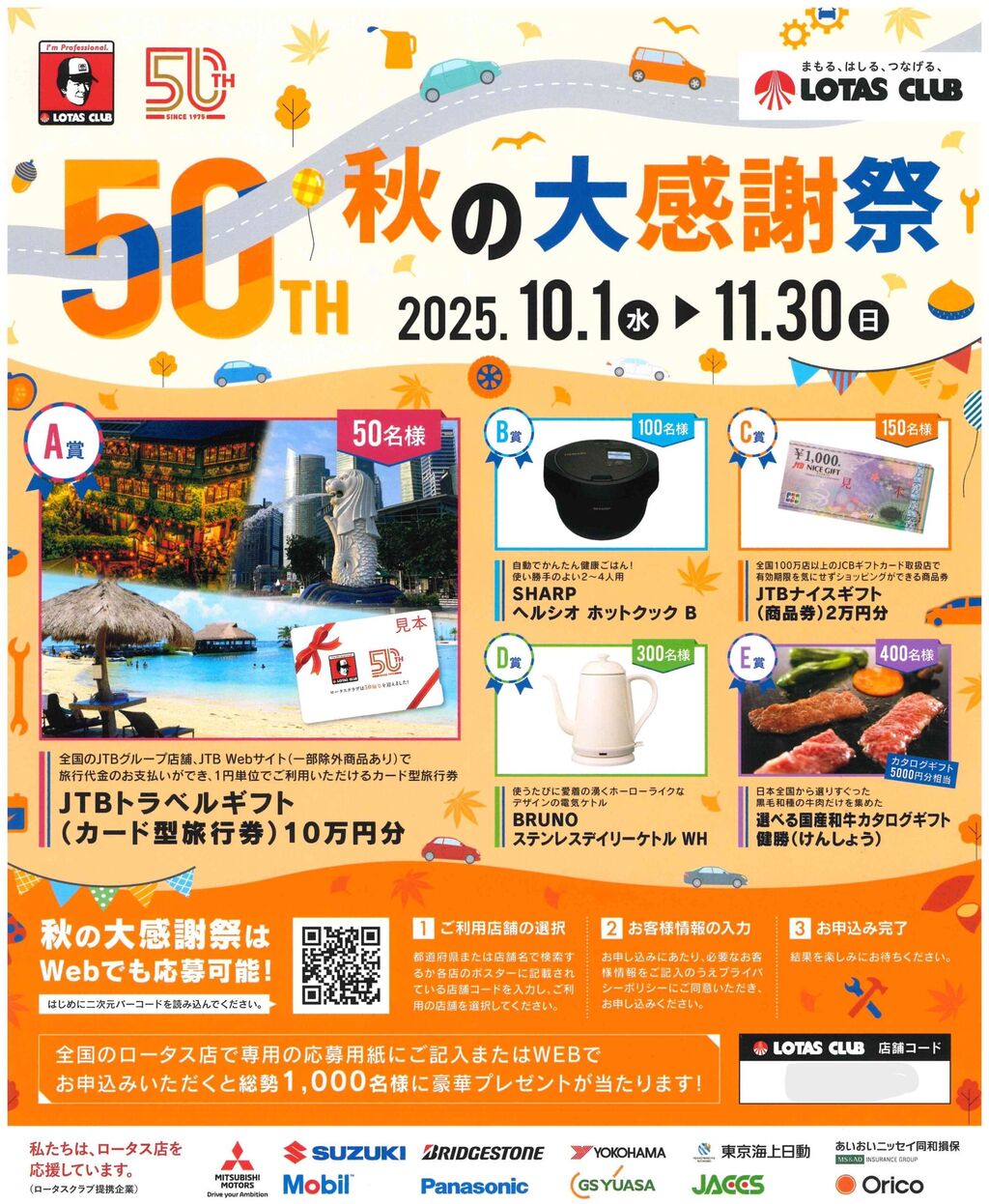今年はロータスクラブ50周年ということで、景品も例年以上の