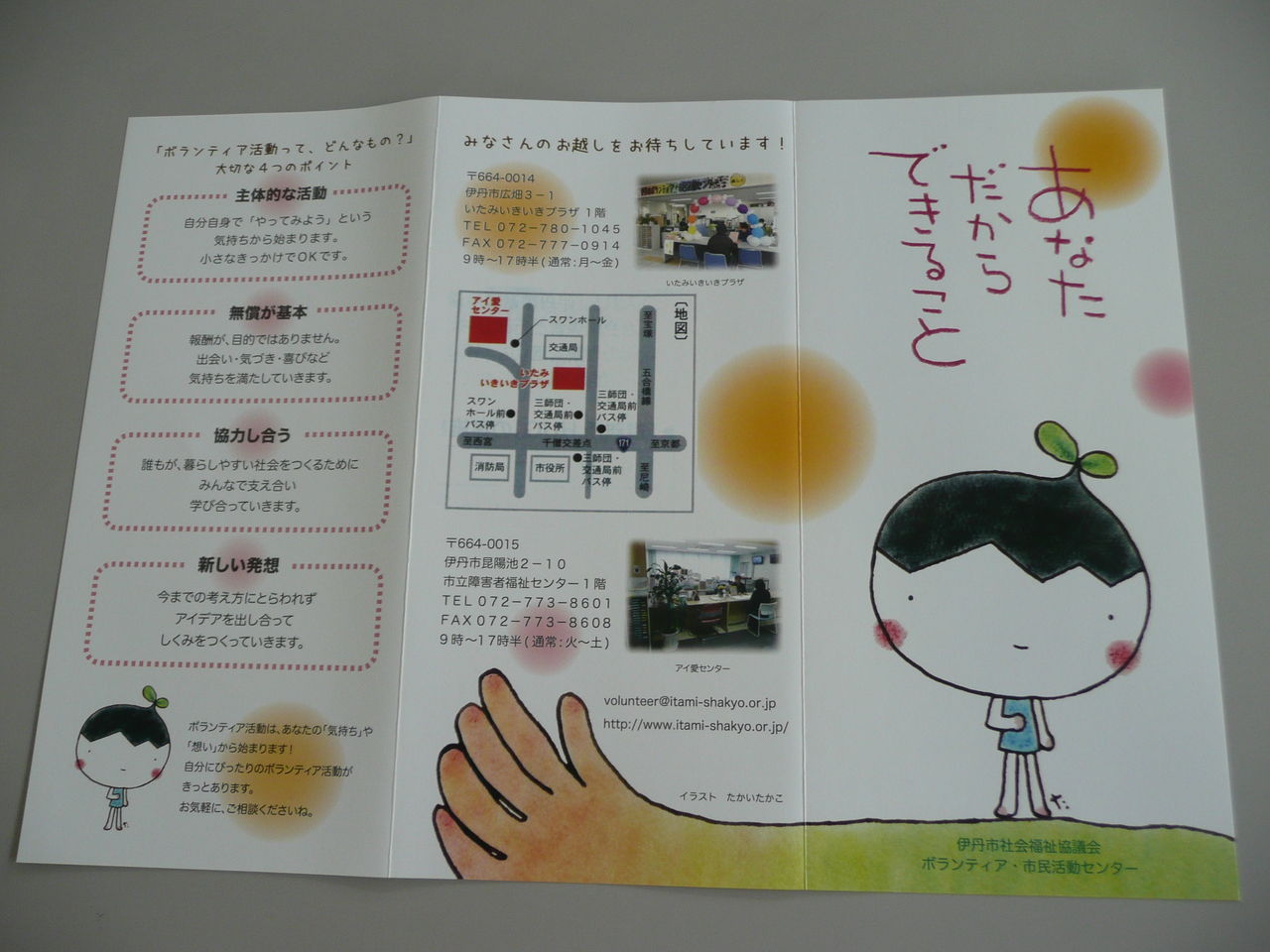 リーフレットは、ボランティアセンターにおいていますが、たくさんの方に手に取っていただきたいので置いてもいいよー!というお店や事業所さんがおられたら持参いたしますのでお声かけくださいませ!!