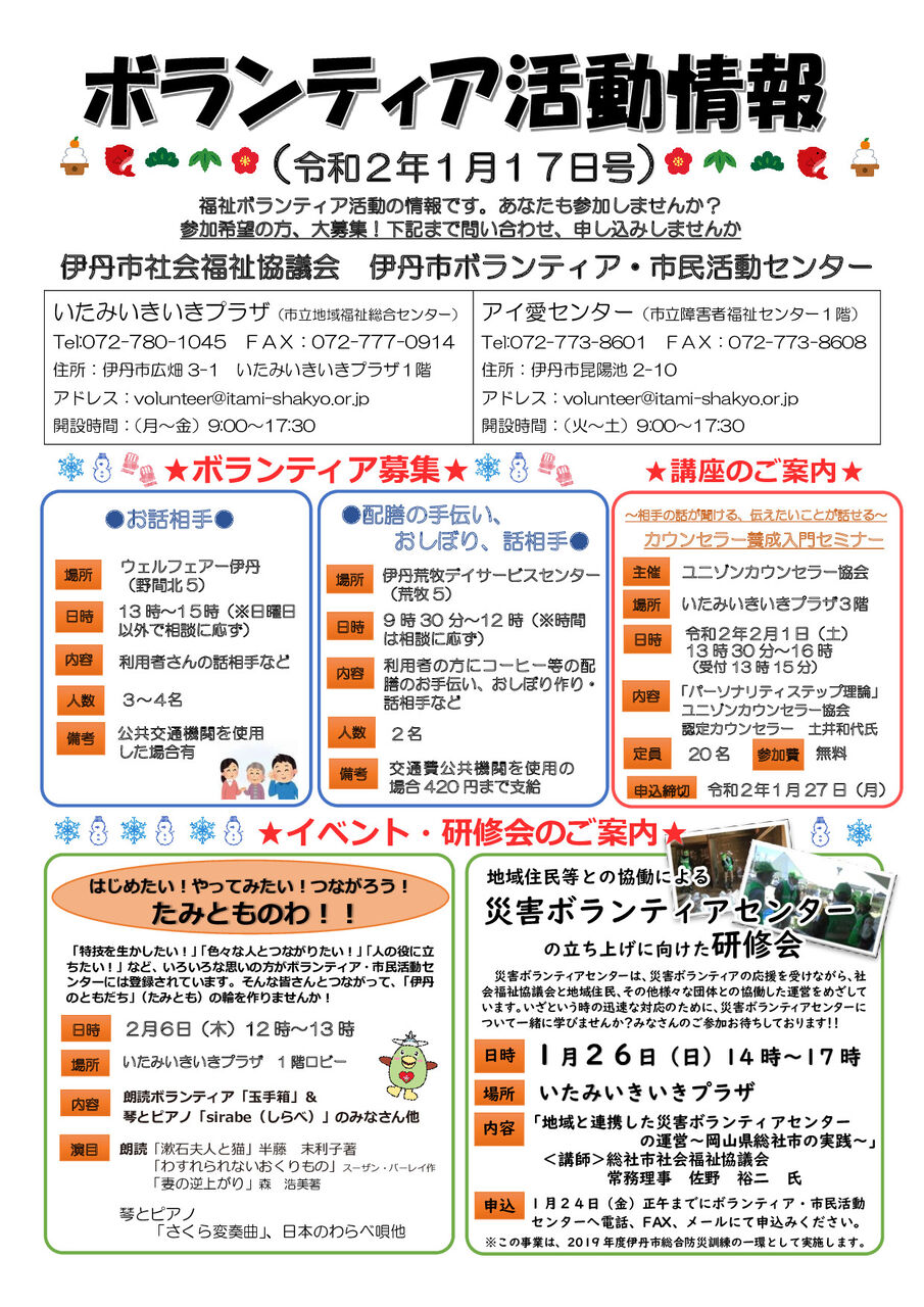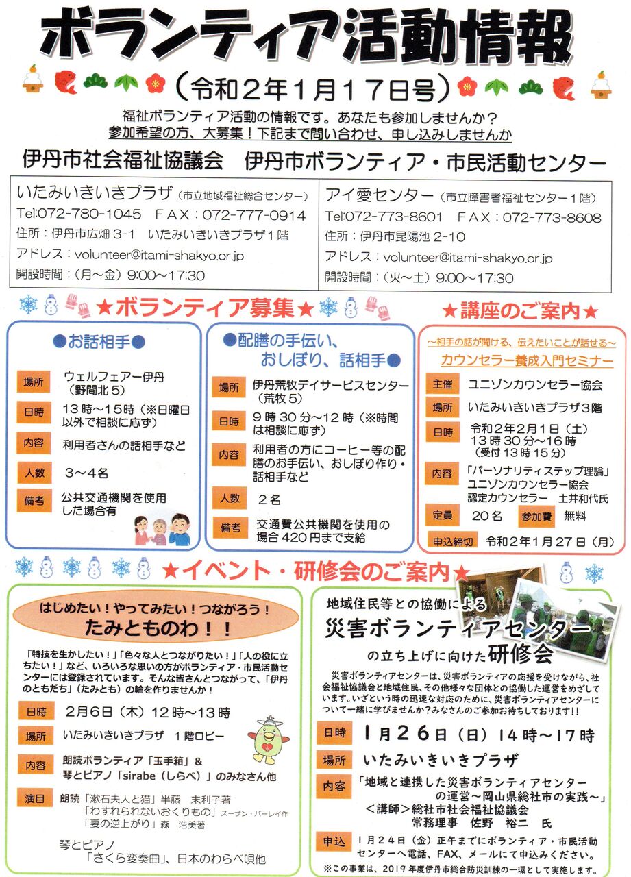 受付場所:伊丹市役所1階 エレベーターホール北側