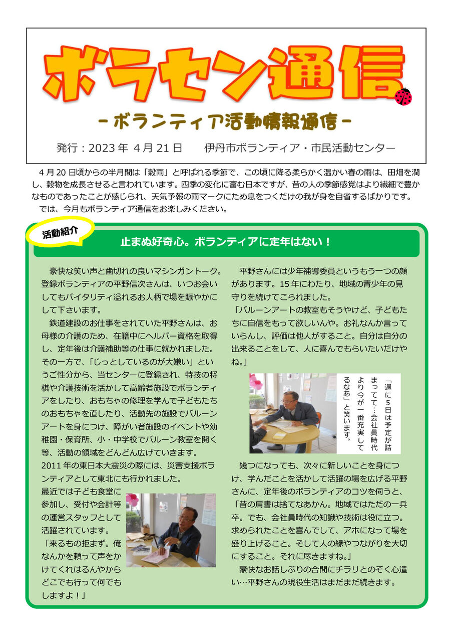 【問合せ】 ボランティア・市民活動センター 昆陽池分室