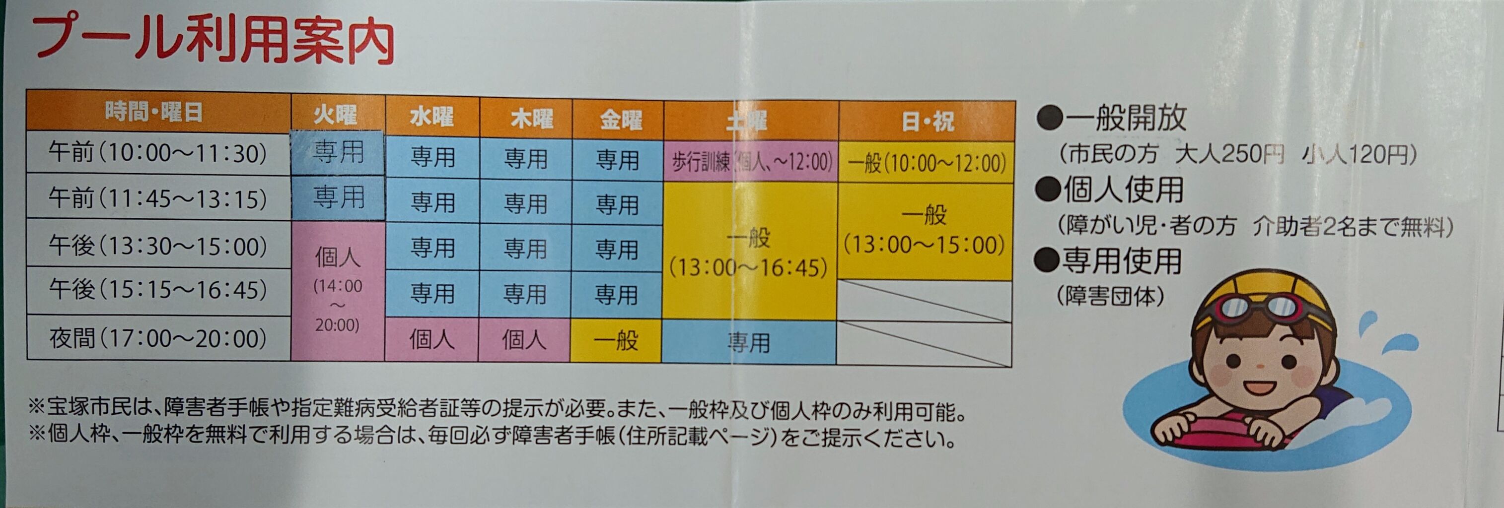 アイ愛センターのプールは、時間帯によって一般開放もしております。市民の方は大人250円、子ども120円、障がい児・者の方と介助者2名までは無料です。ぜひ泳ぎに来てください!