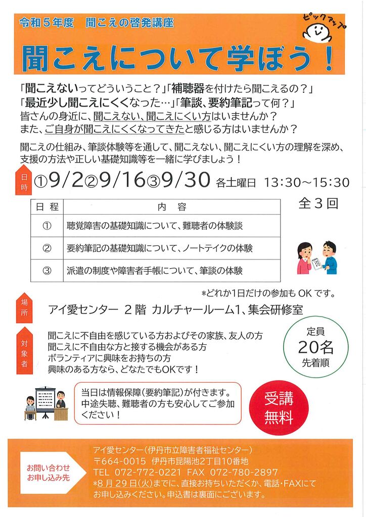 【申込み】8月31日(木)までに、電話またはFAXにてアイ愛センタ