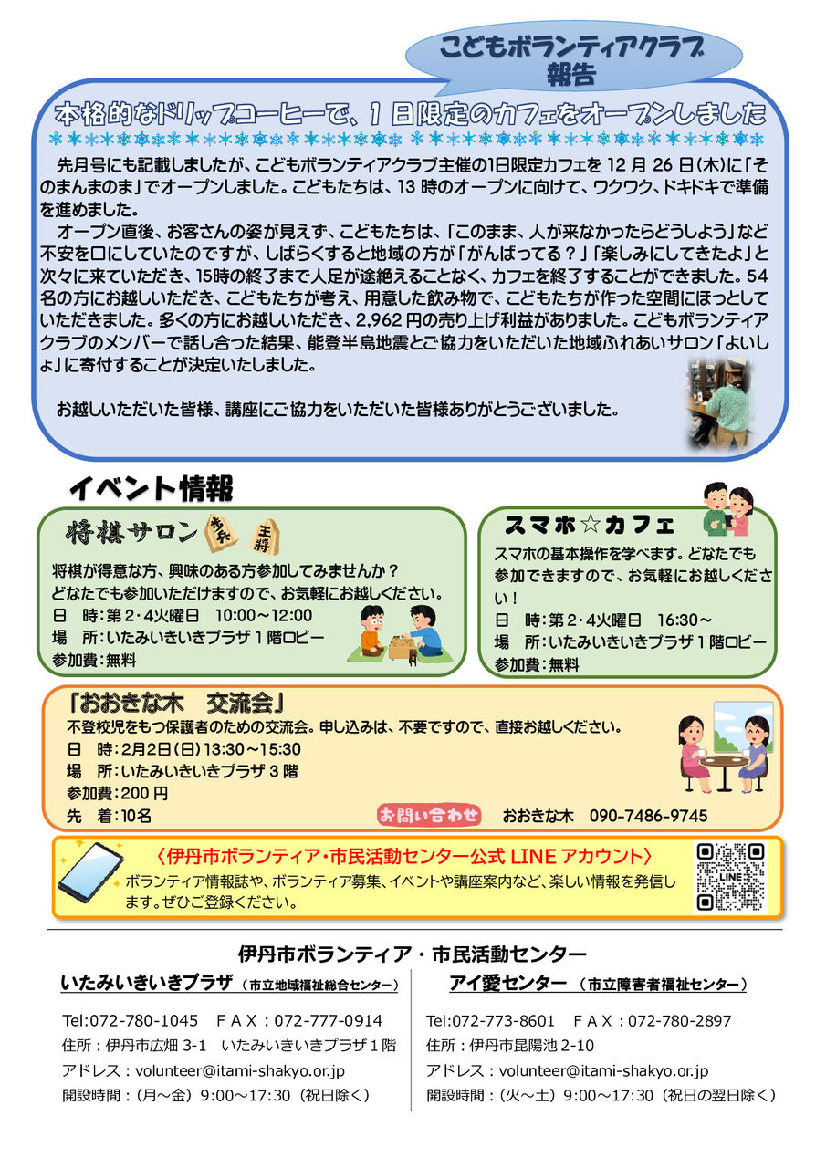 気になる情報などありましたら、いつでもボランティア・市民活動センターまでご連絡ください