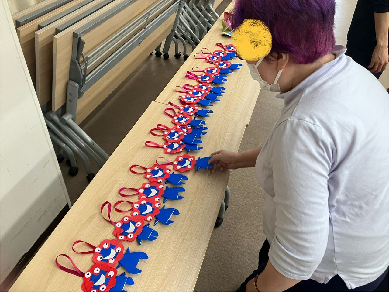 中野北サロンの方々の手作り作品が記念品としてご準備されていました。 折り紙ミャクミャクです。一つ一つ、表情が違っていて、どのミャクミャクにしようか…迷います