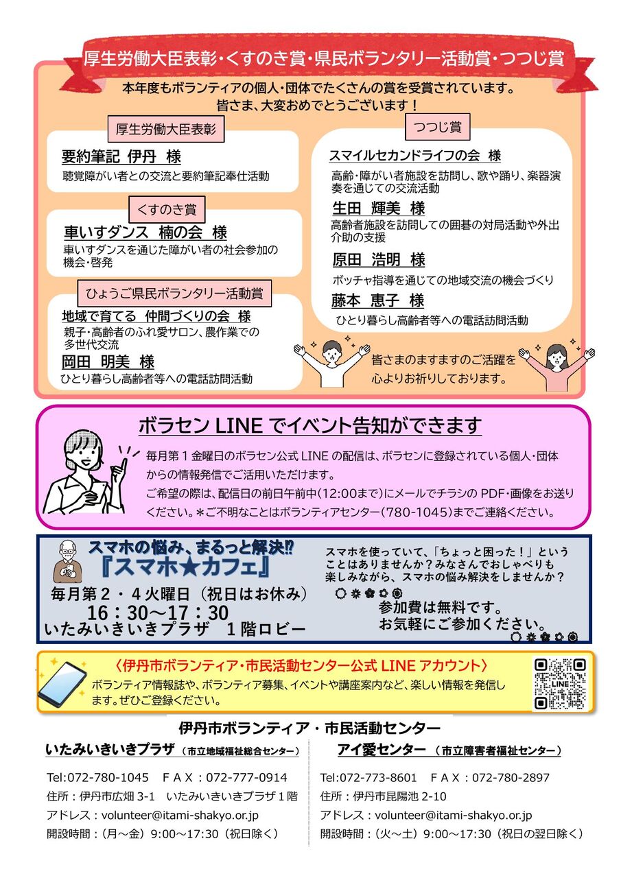 気になる情報などありましたら、いつでもボランティア・市民活動センターまでご連絡ください
