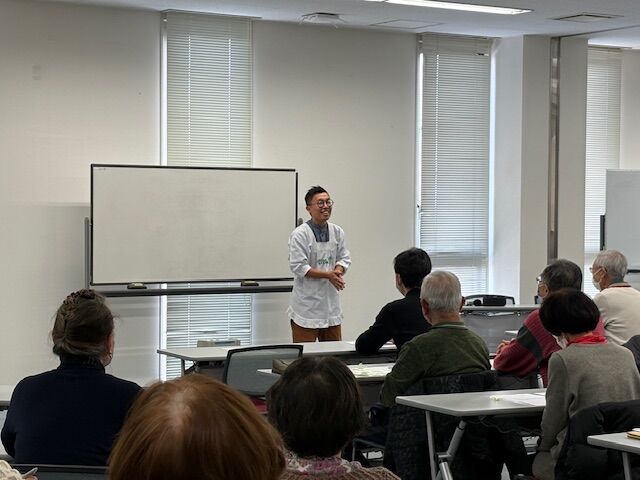 割烹着姿の田川先生を見て、みなさん何が始まるのだろうとドキドキわくわく