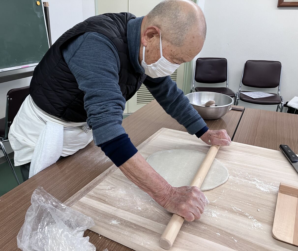 蕎麦打ち道具は、池尻文化センターに備品として置かれているものを利用されていました。共同利用施設にそば打ち道具があるというのは素敵ですね