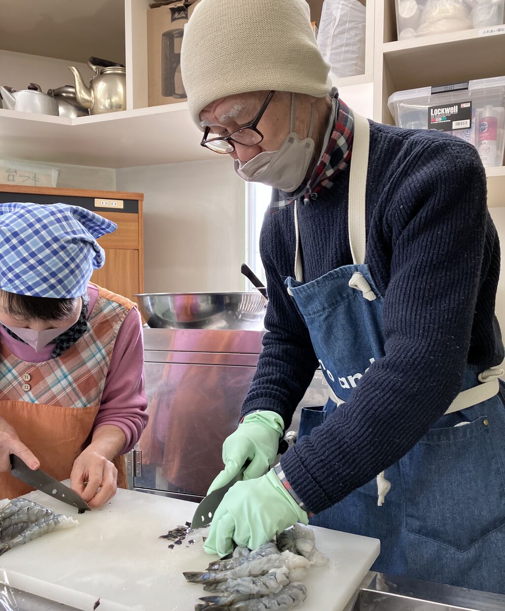 さながら和食料理屋さんの厨房のようです。炊き込みご飯の具材も一から用意され、出汁も取り、海老もワタ取りをされるなど、一つ一つの工程を丁寧に進められていました。