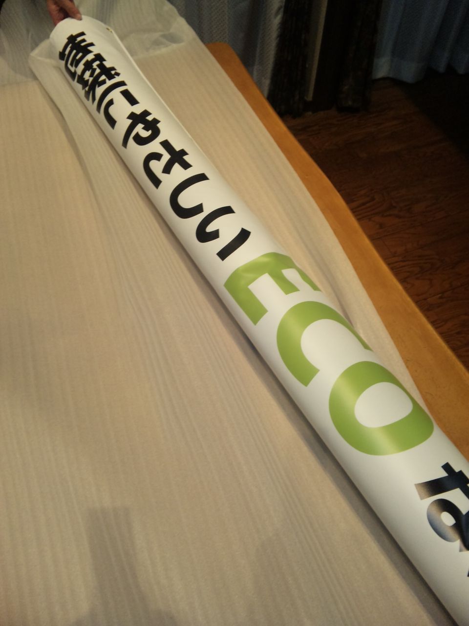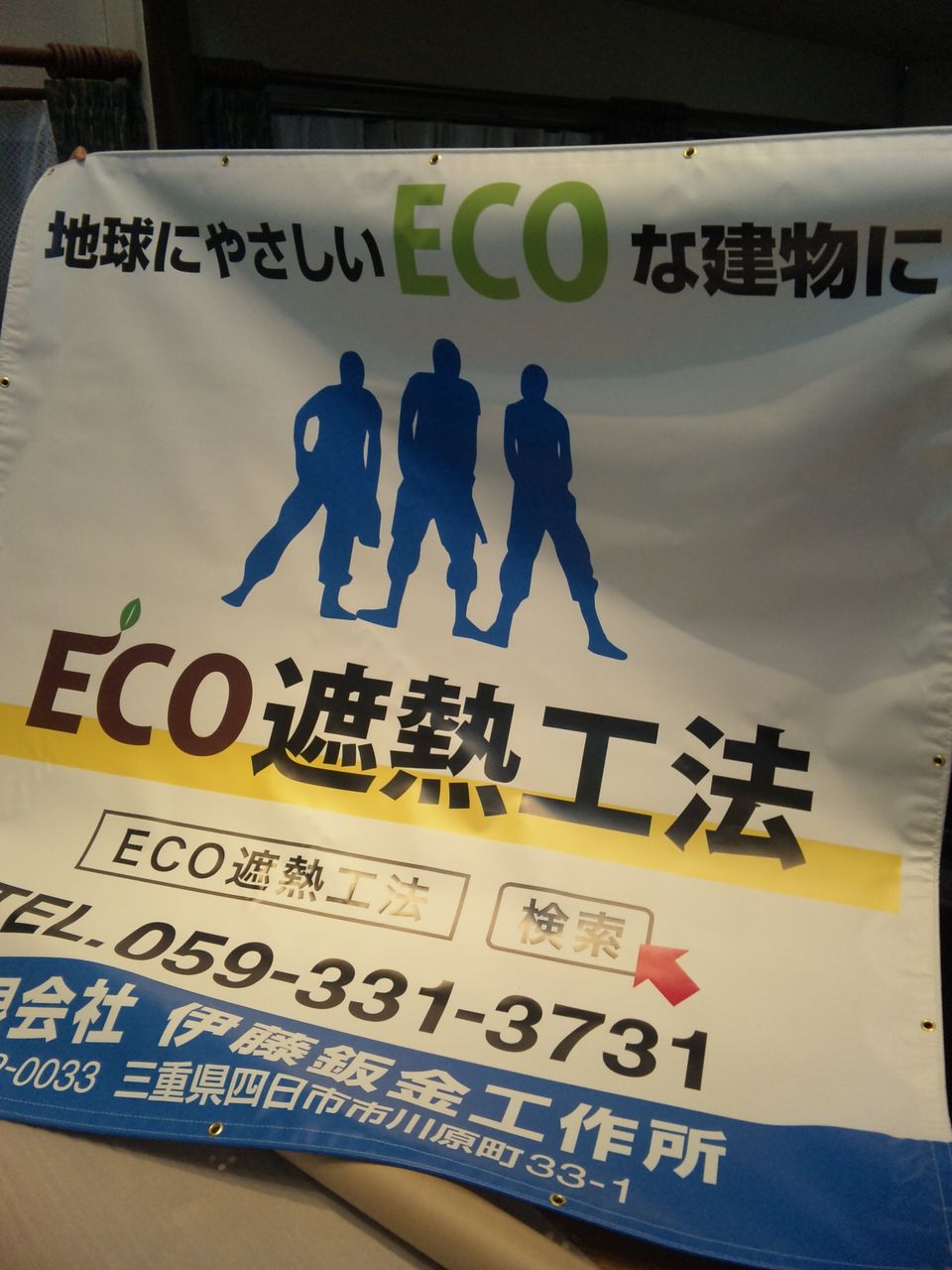 日曜日、発注していたECO遮熱工法の工事幕が届きました