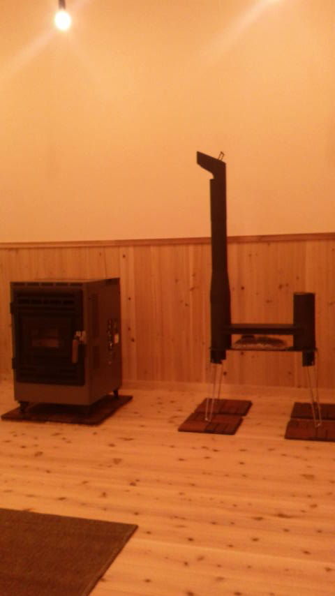 癒し部屋の内装が完成したので、先日展示用のペレットストーブを搬入しました