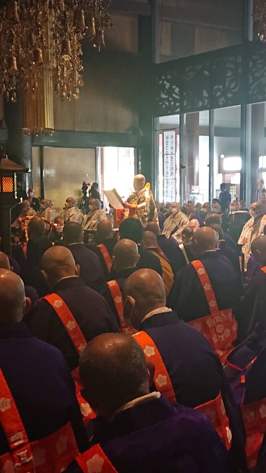 真言宗智山派管長布施浄慧猊下、大本山川崎大師平間寺藤田貫首、大本山高尾山薬王院佐藤貫首はじめ大勢の宗内外諸大徳来賓が見守る中御本尊不動明王へ晋山傳燈奉告文を読み上げる岸田照泰貫首