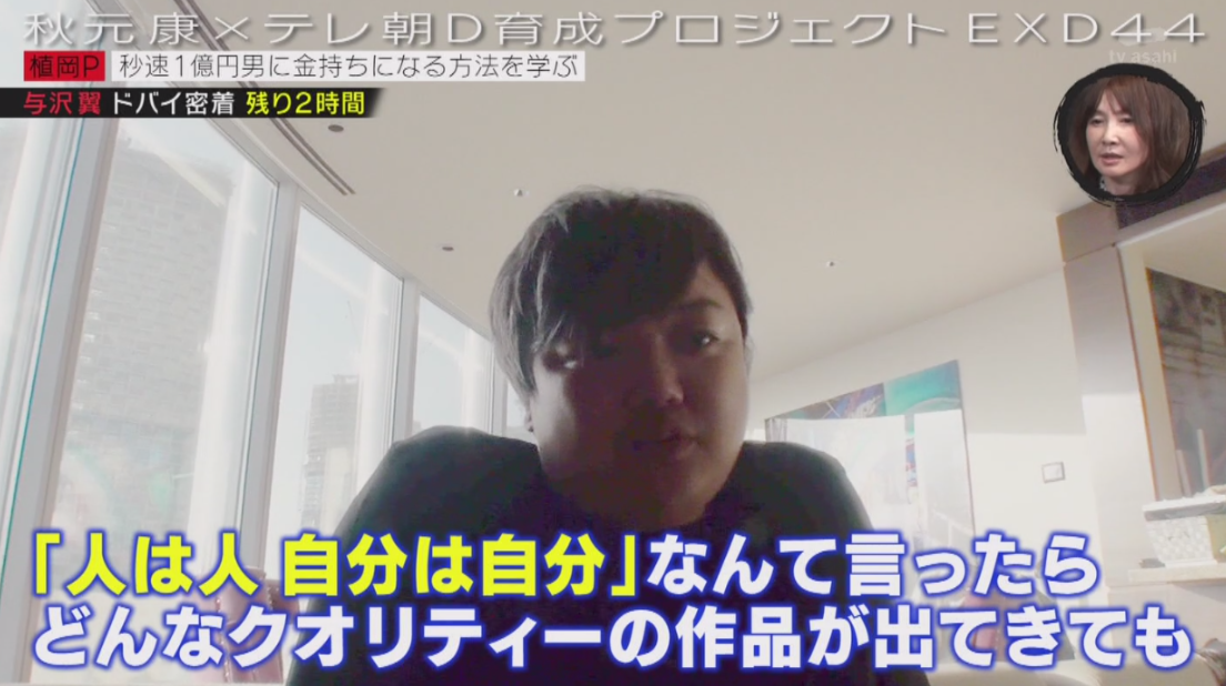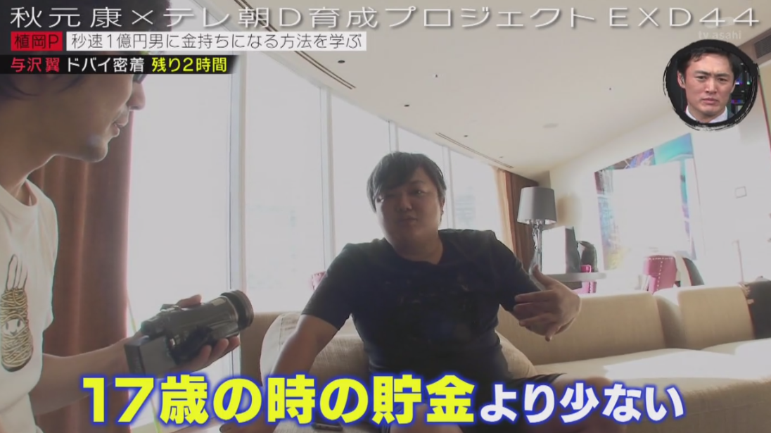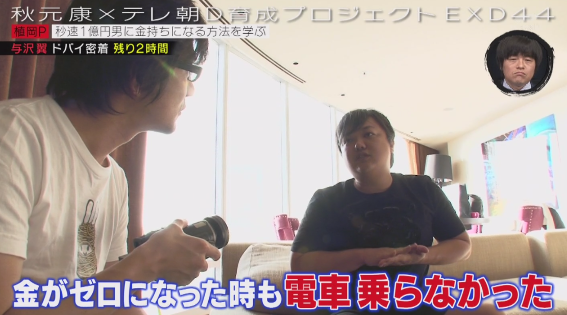 ソース:テレビ朝日EXD44『“秒速1億男”与沢翼に金持ちになる方法を学びにドバイへ行く(後篇)』