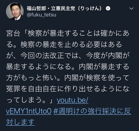 検察の良心とかういうあやふやなもので、改正OKとか言ってんのか