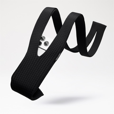 「iPhone Pocket」は、イッセイ ミヤケによるプリーツ素材に着想を得たリブ編みのオープン構造を持つニット製アイテム。オリジナルの3Dニット構造を採用し、「一枚の布」のコンセプトからインスピレーションを得たデザインが特徴という。