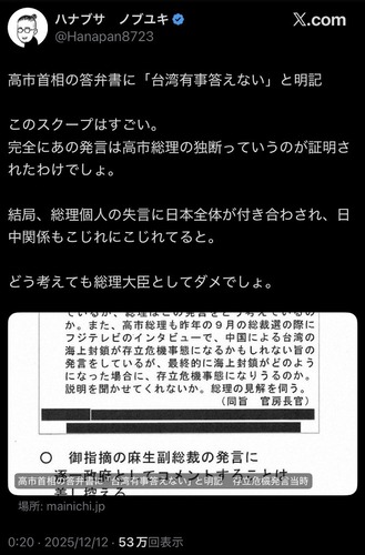 同じ質問をしたことがある高市も外交センス皆無ということでよろしいか