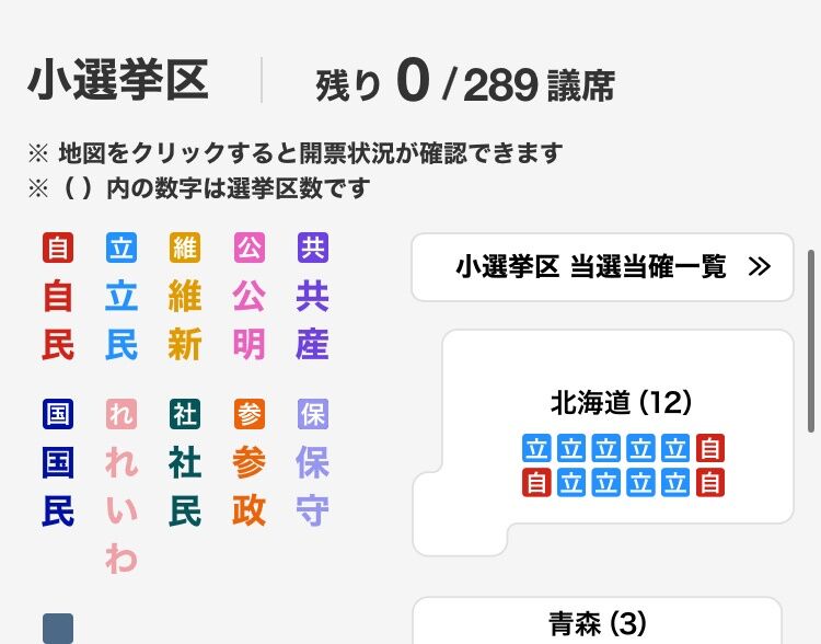 2024衆院選 北海道選挙区は自民3人のみ当選、全員が僅差