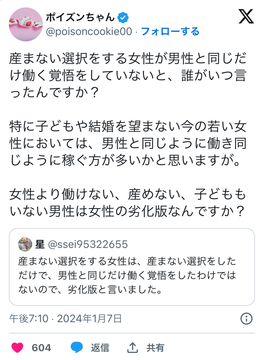 都合のいい女の都合のいい発言をやたら持ち上げる弱男の群れも滑稽