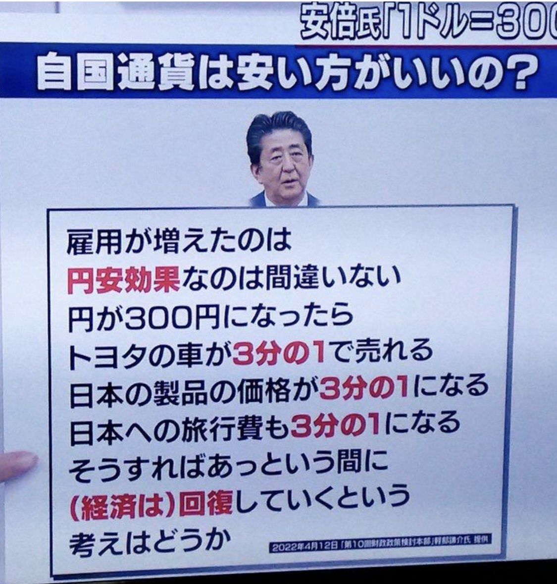 「自国の通貨が高くなって破産した国はな い。安くなってほぼ破産ということになった国はいっぱいある」