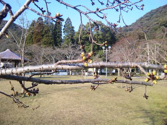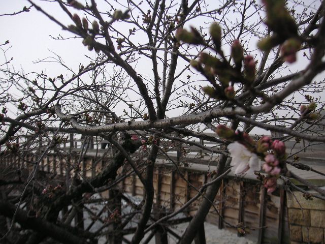 でもこんな中、もう桜が咲き始めた。