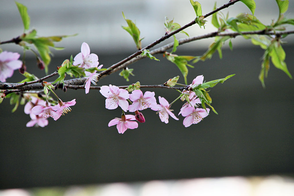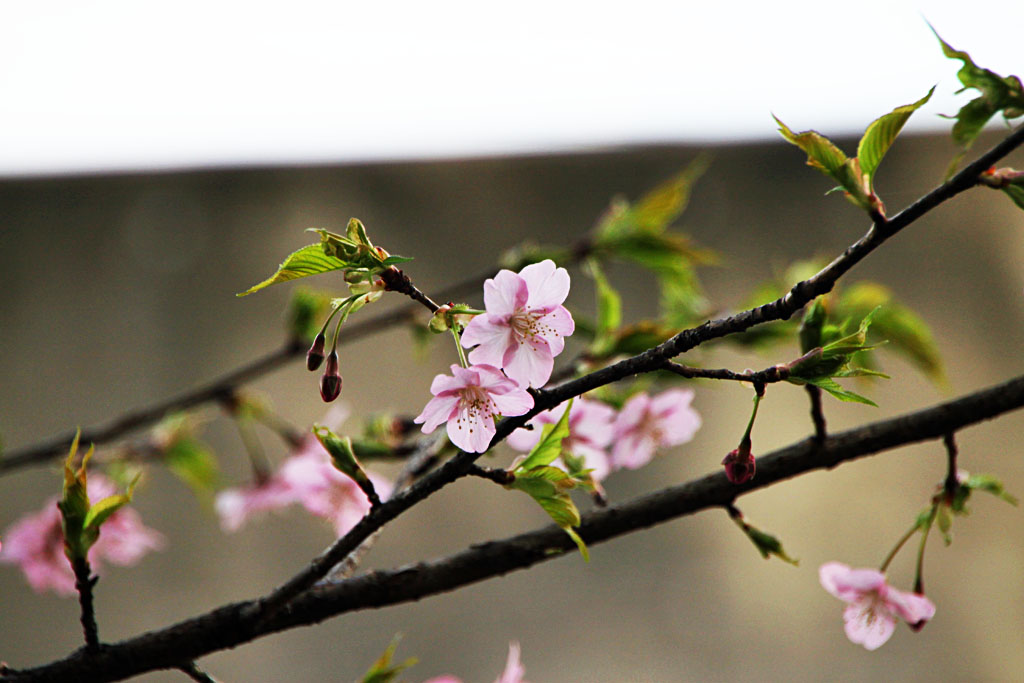 意賀美(おかみ)神社本殿横の早咲きの河津桜がきれいに咲いていますが、癒しの里のすぐ北にも小さな河津桜があります。
