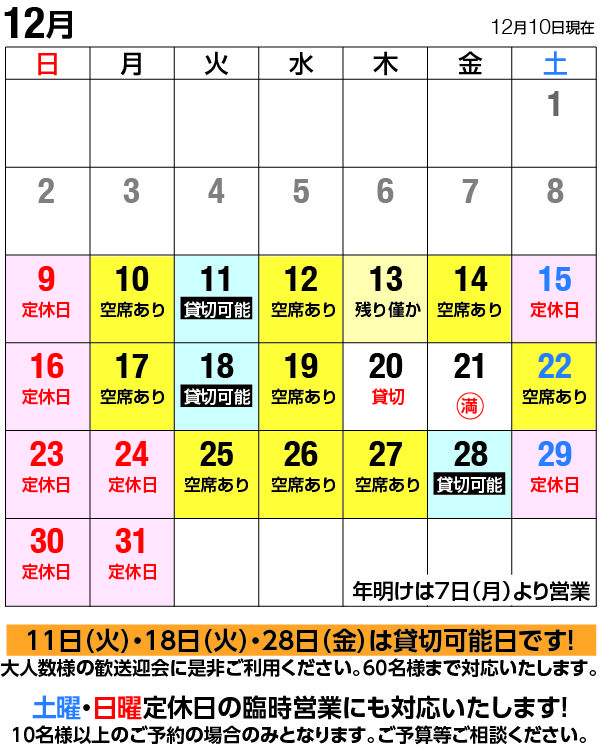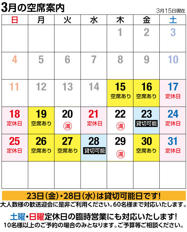 大人数様でのご予約可能の日もまだまだございます。