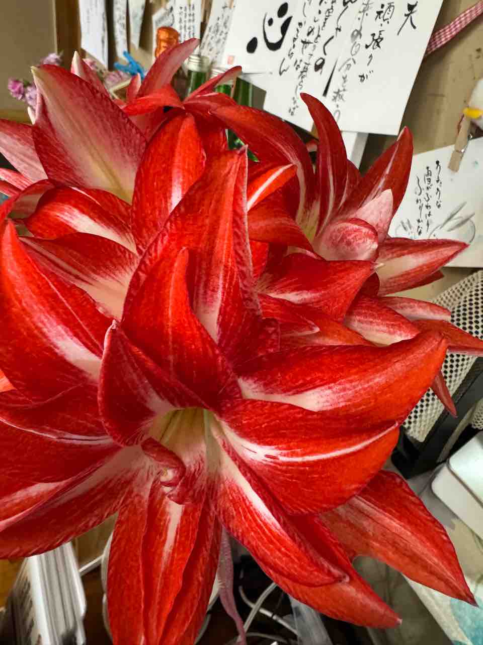 アマリリスは まるでお帰りなさい!とばかりに、立派な花を咲かせてくれていました。😭