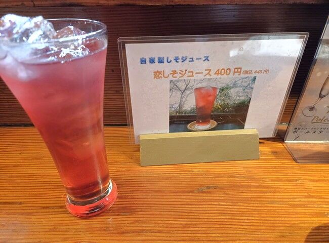 大満足のあとは、花粉症シーズンにうれしい味方!恋しそジュース(自家製シソジュース)をいただきました。