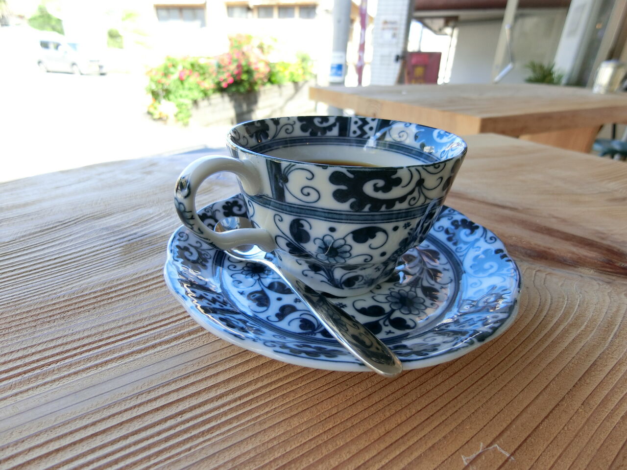 ランチに付くコーヒーは、お天気もいいので外のテラス席で。