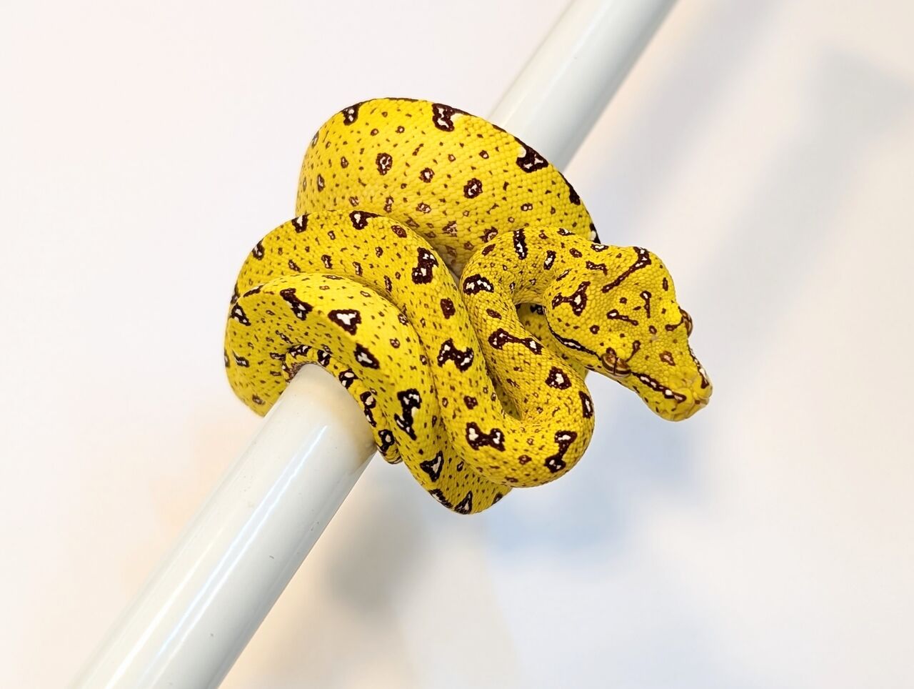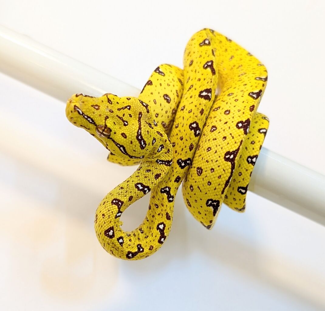 体表の黄色の模様やブルーの尻尾が美しいです♪(´ε` )