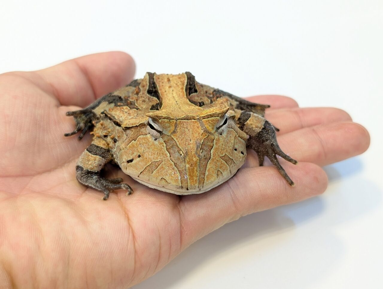 小さめですが体躯はしっかりしており、コオロギもピンセットから食べてます