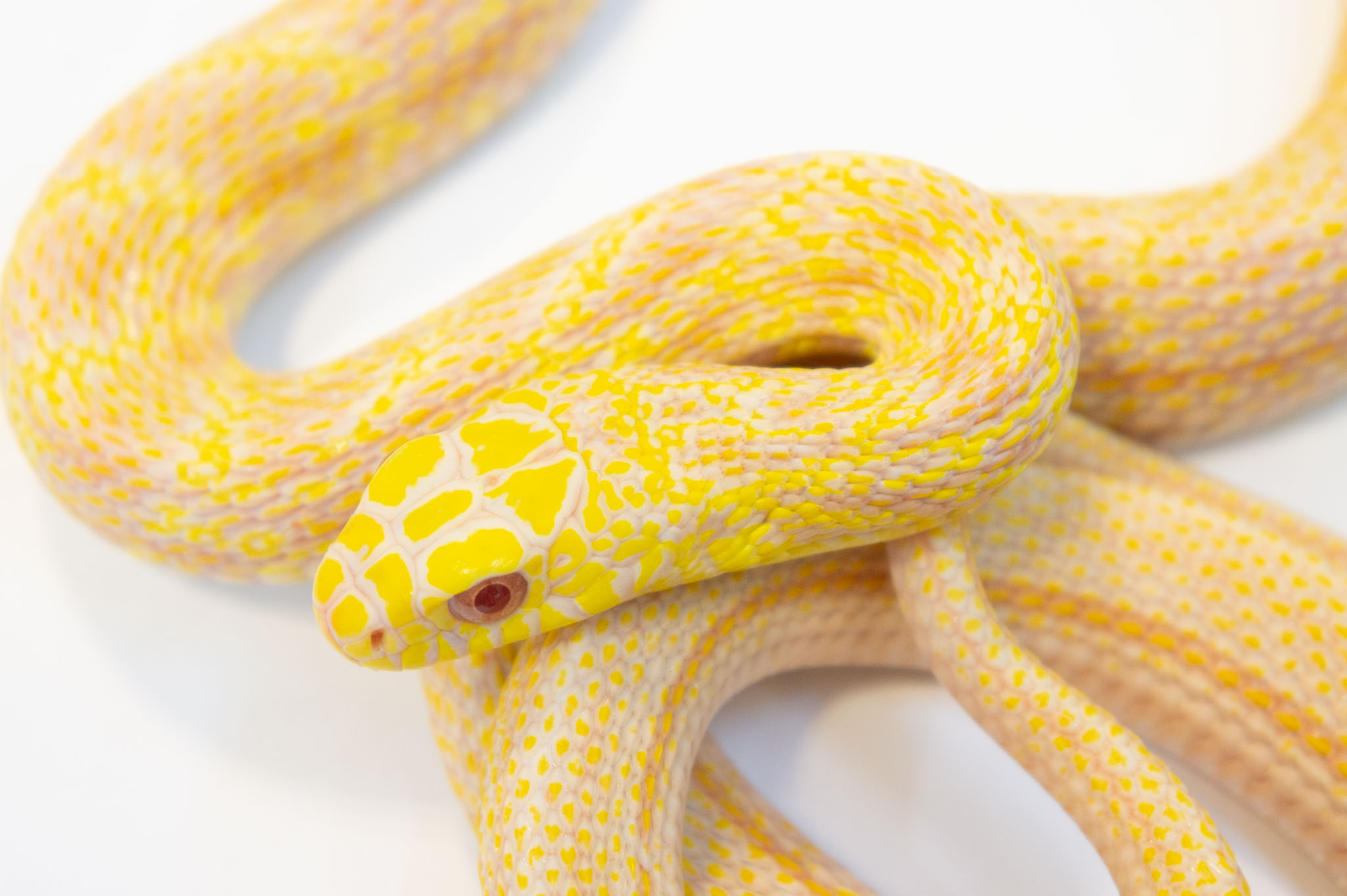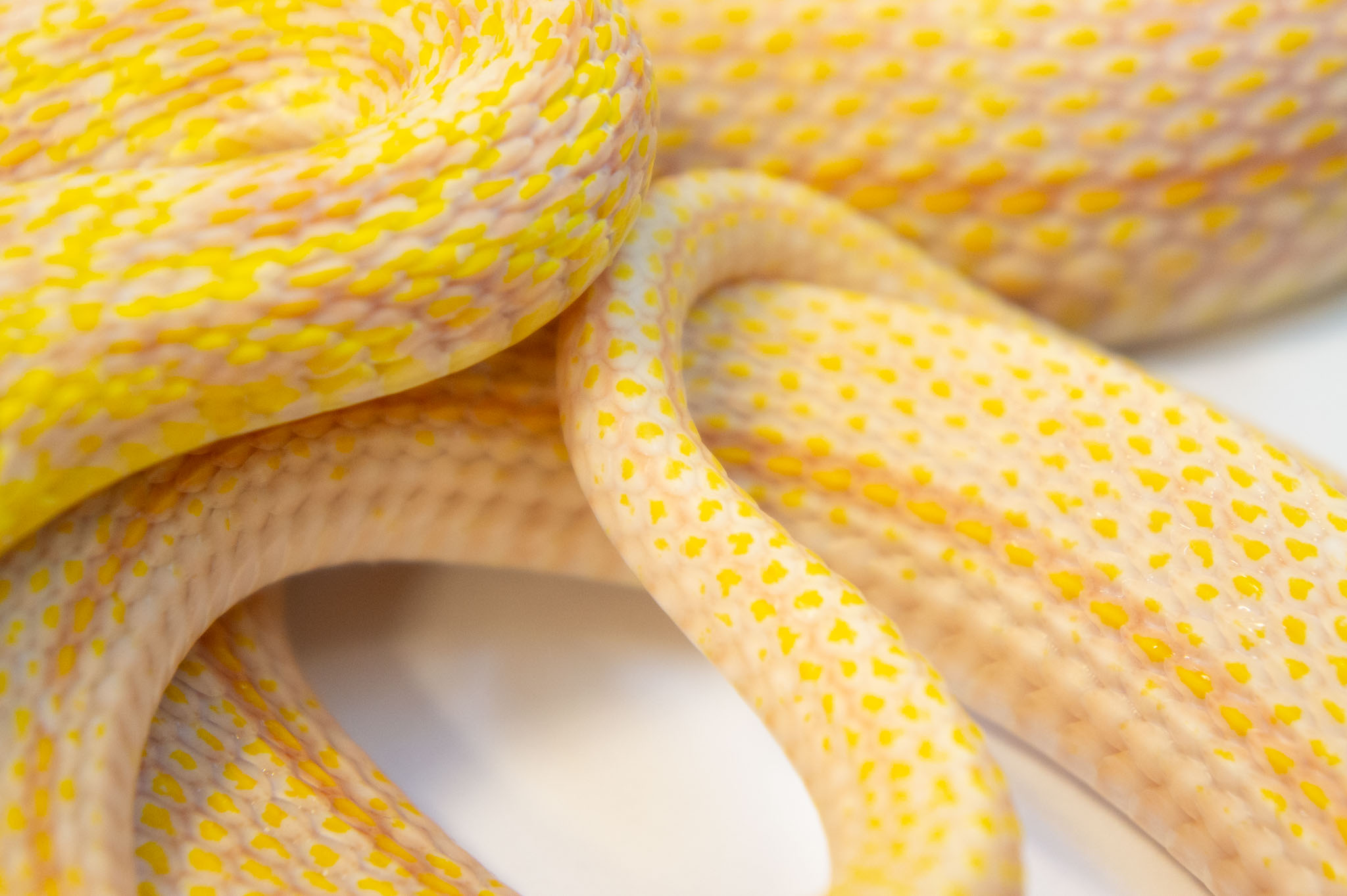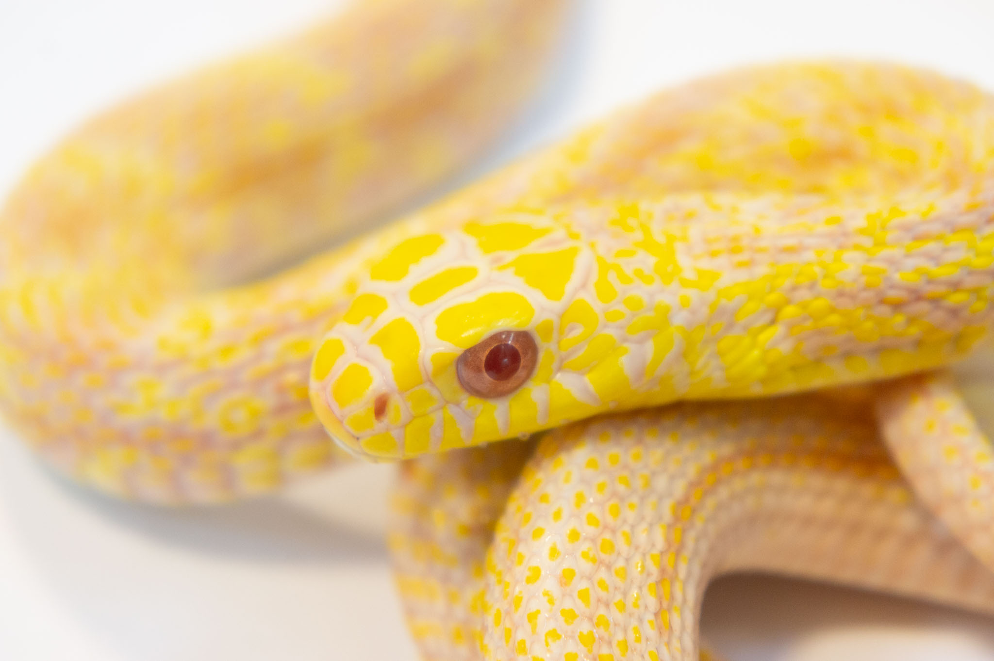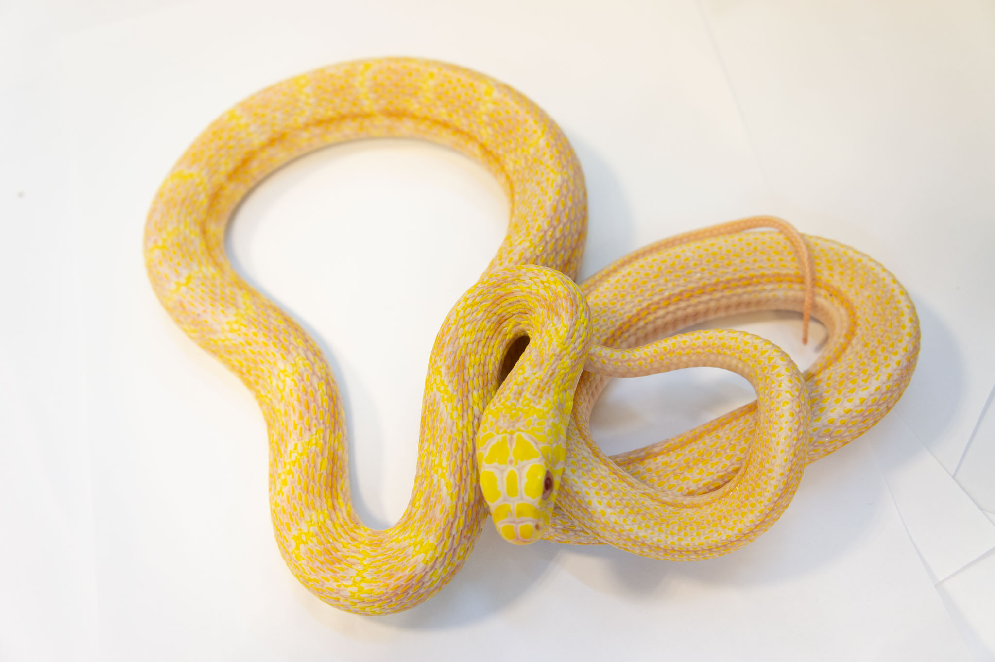 通常黄色のボディに黒の模様が入り、メリハリの利いた体色がかっこよくて人気ですが、アルビノ個体になると神々しさがありますね