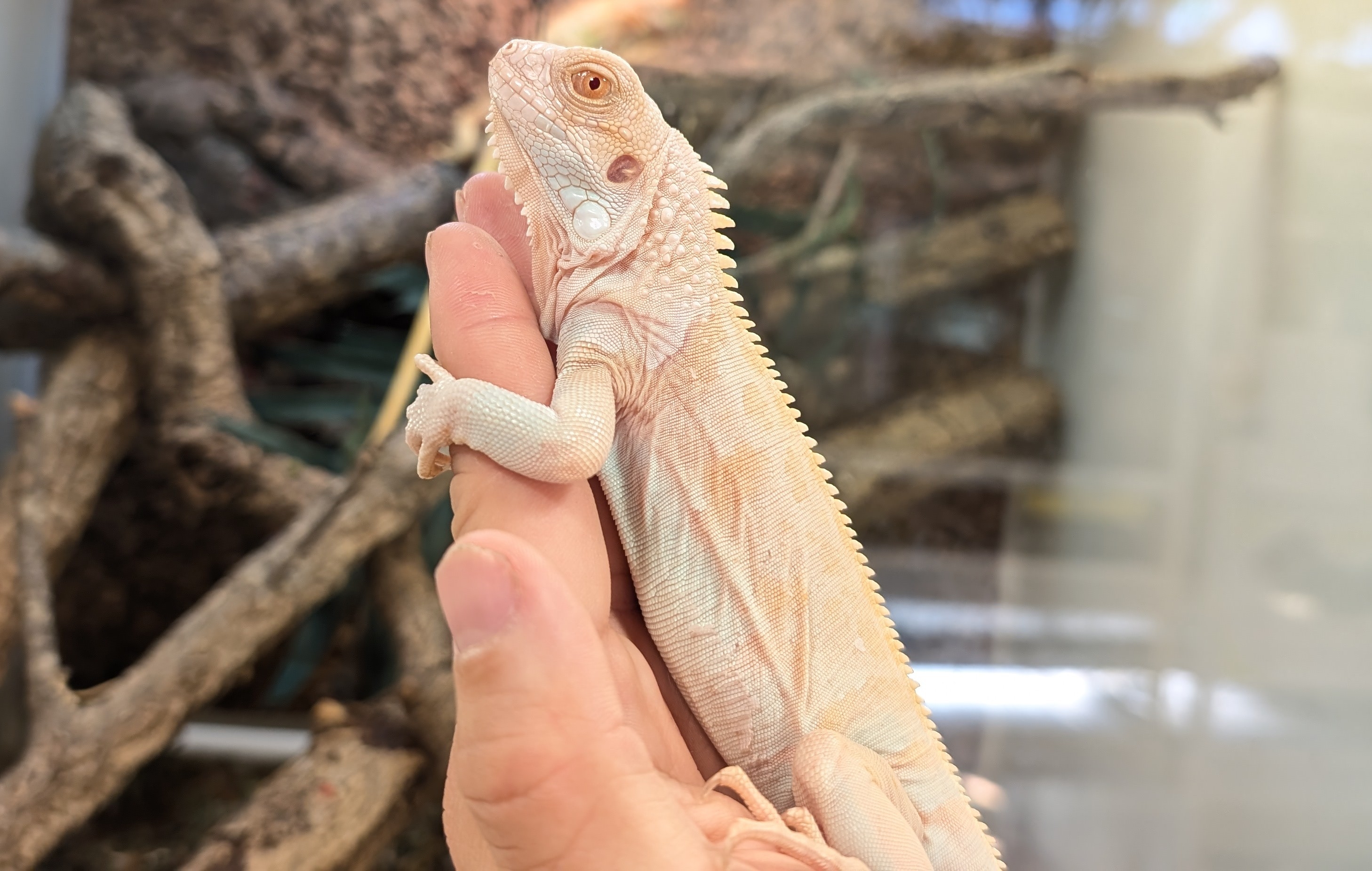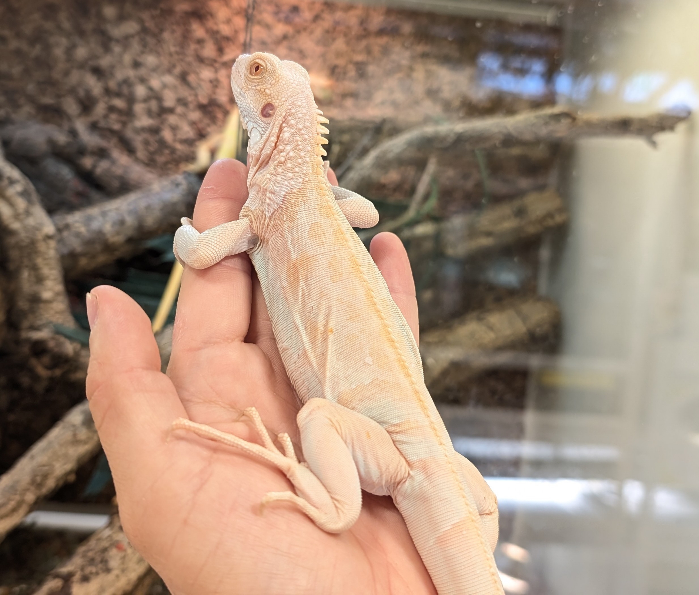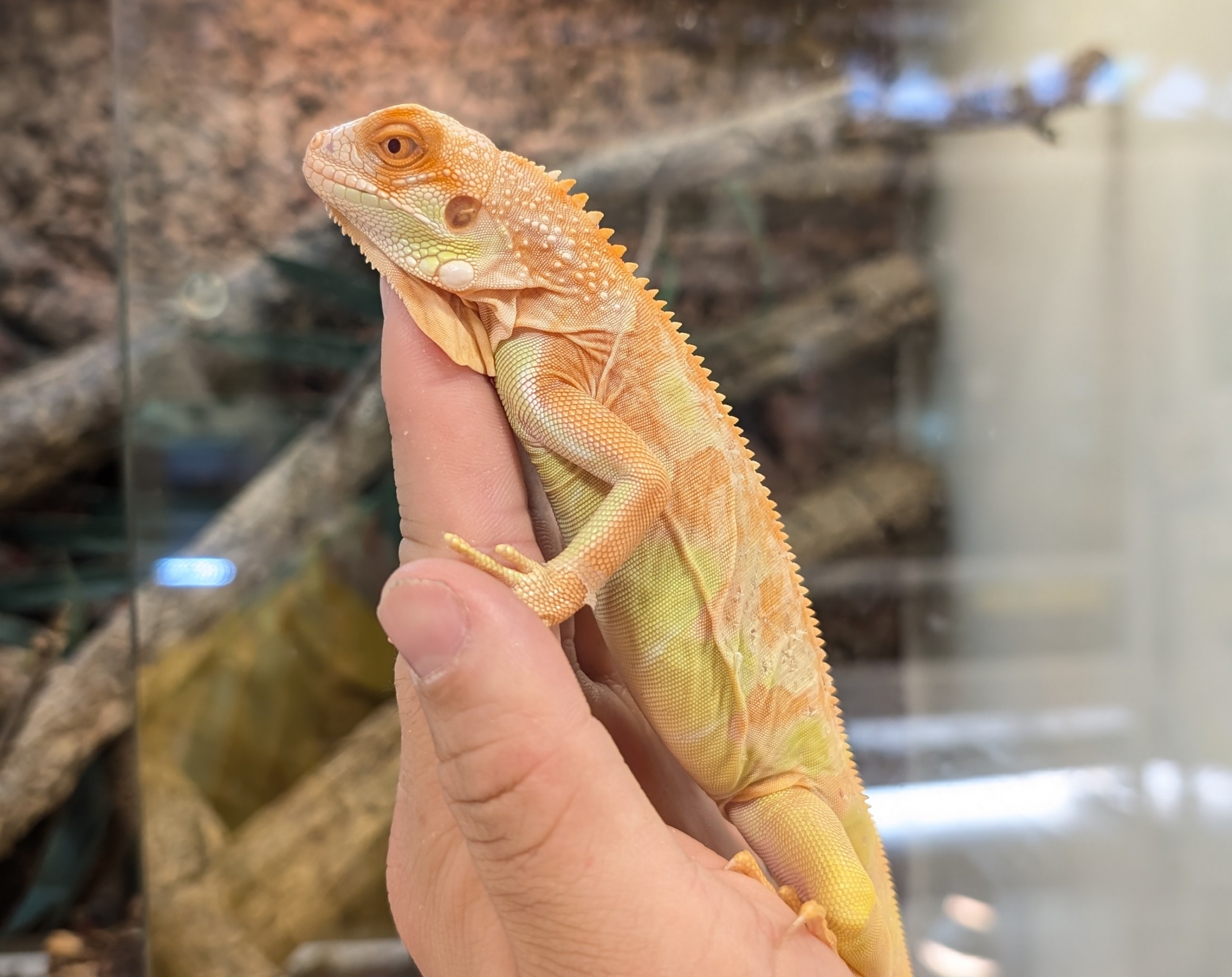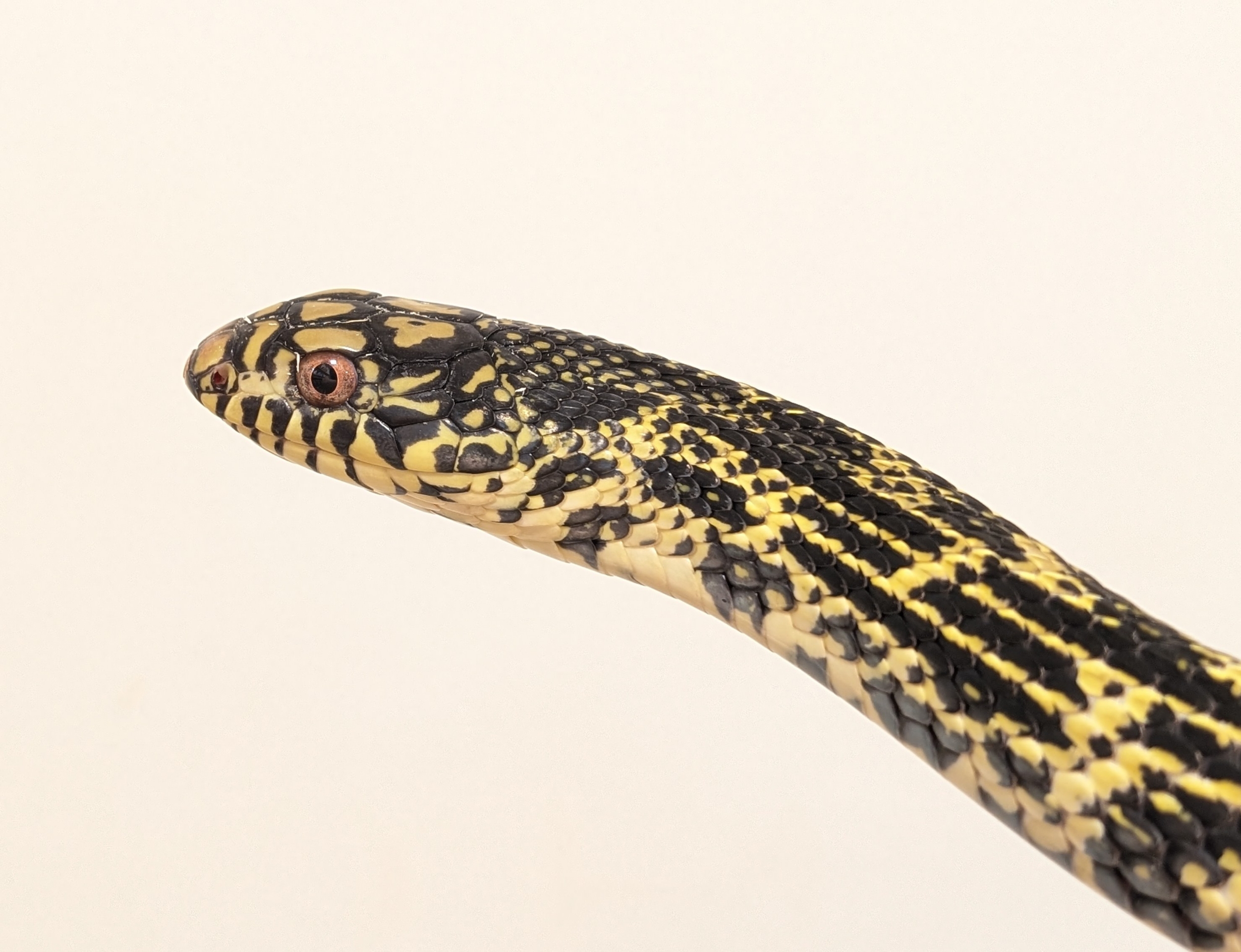 通常黄色のボディに黒の模様が入り、メリハリの利いた体色がかっこよくて人気ですが、アルビノ個体になると神々しさがありますね