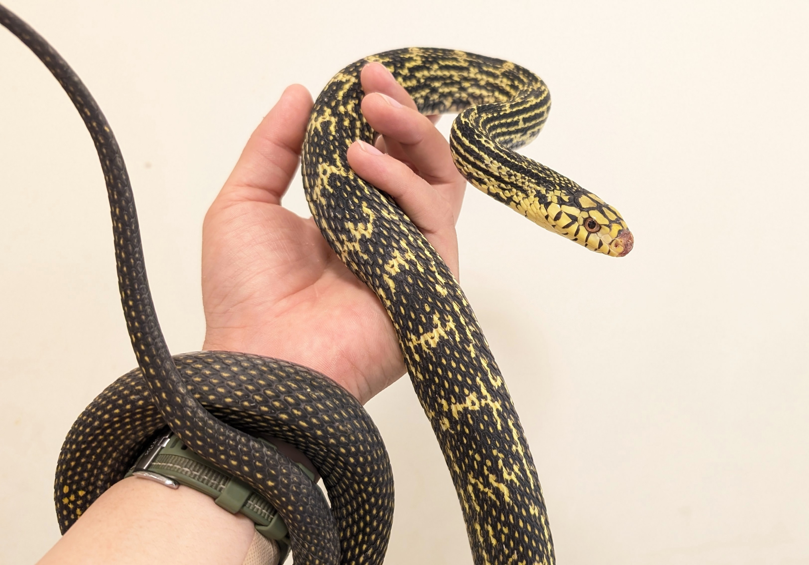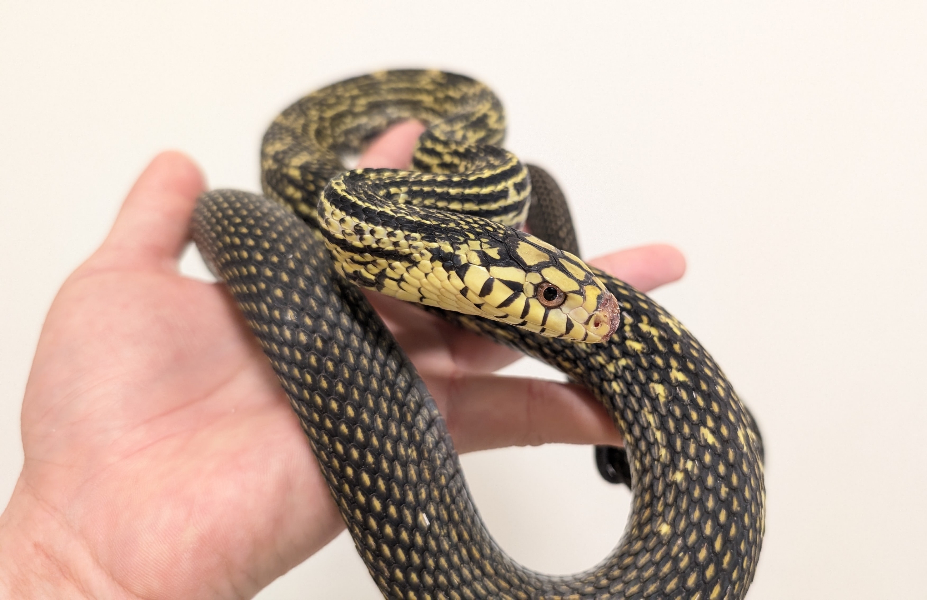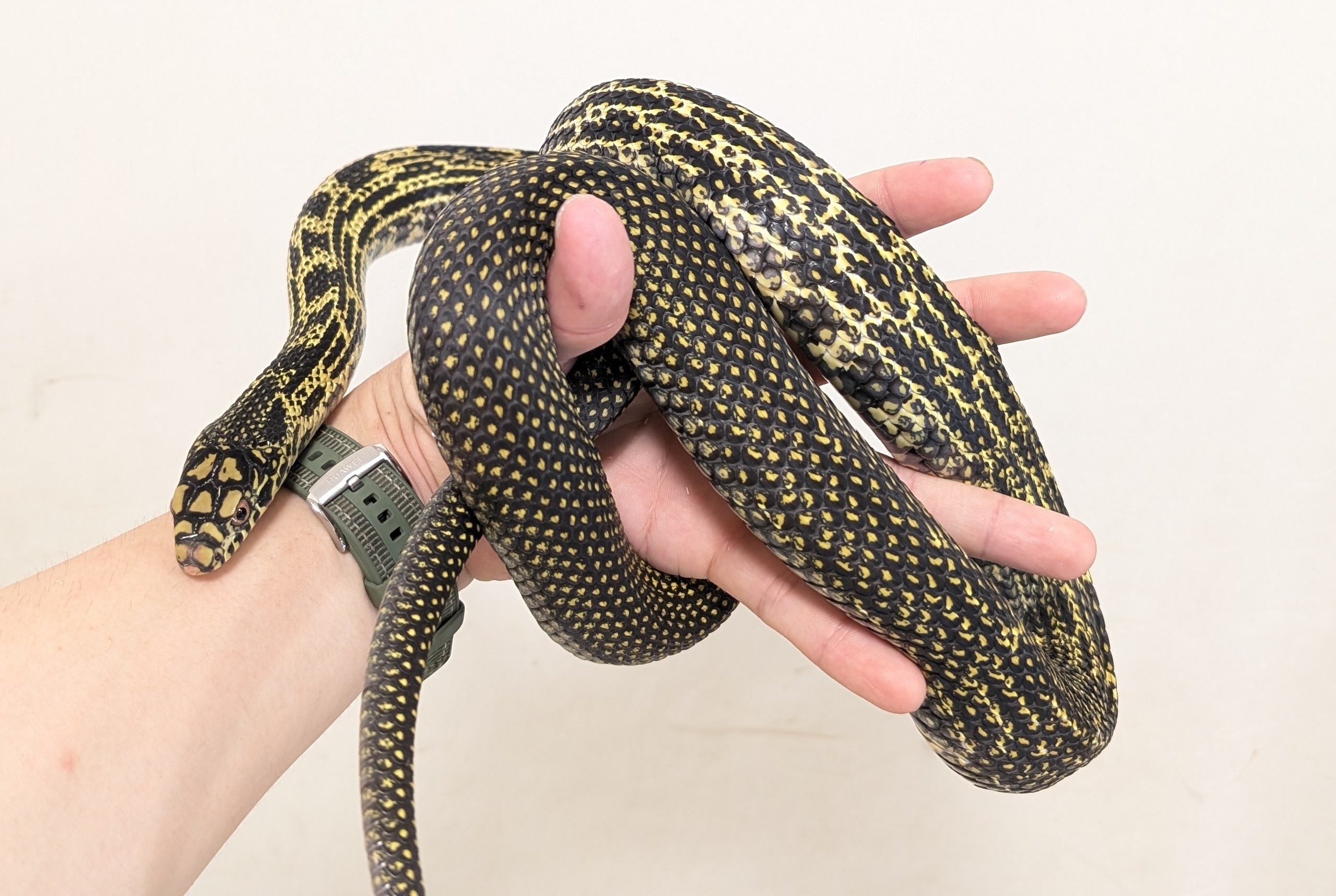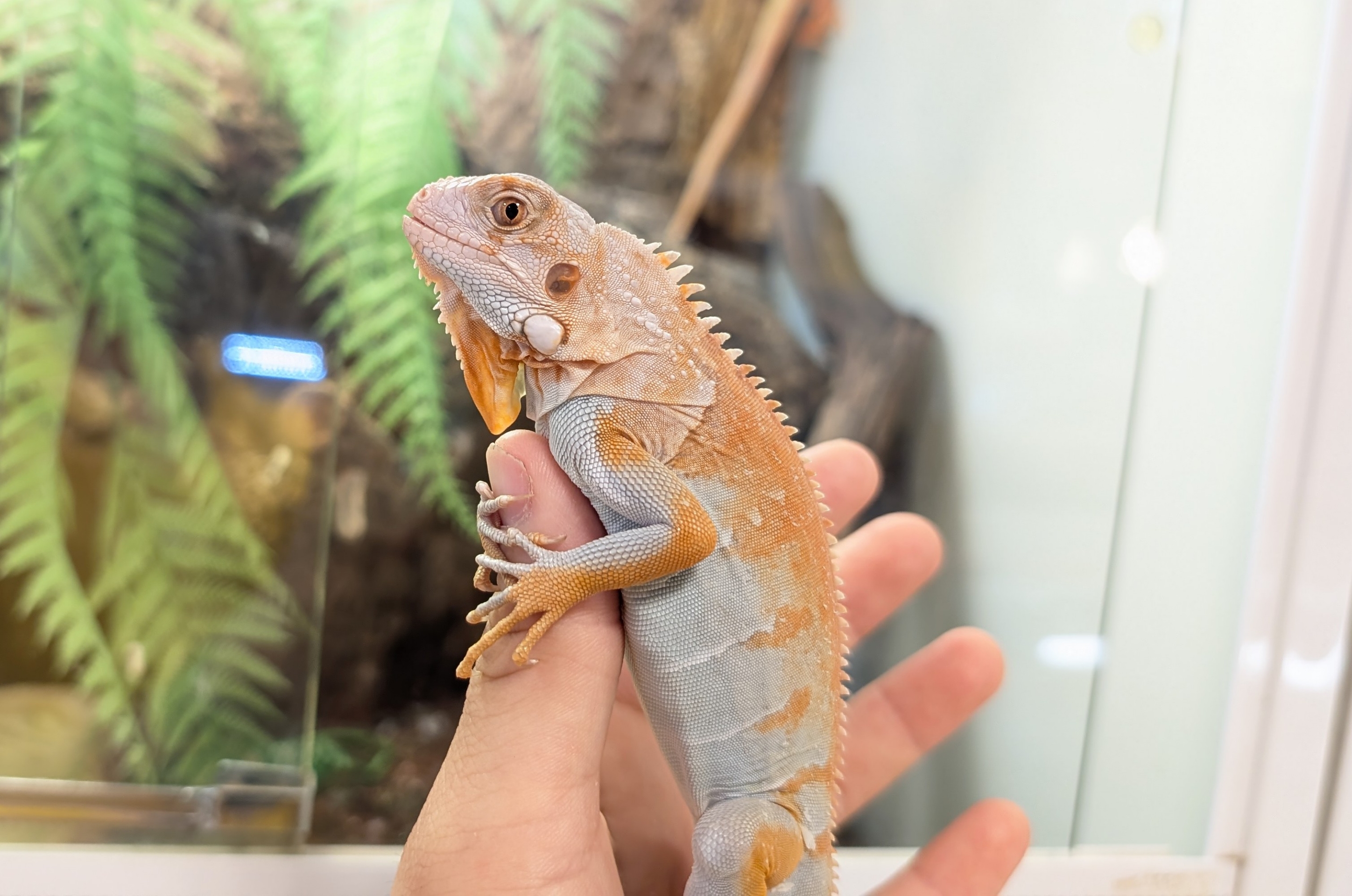 通常黄色のボディに黒の模様が入り、メリハリの利いた体色がかっこよくて人気ですが、アルビノ個体になると神々しさがありますね