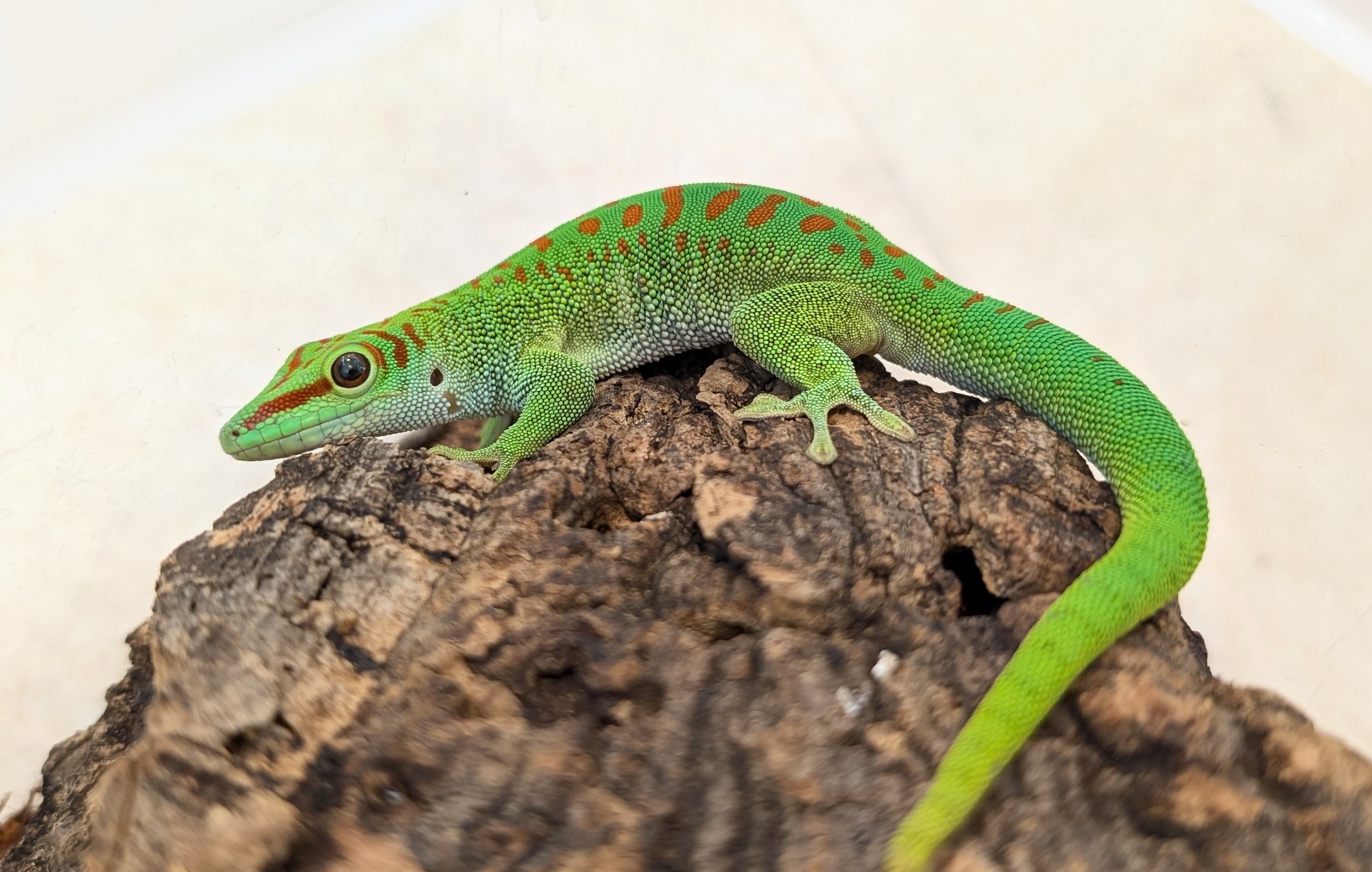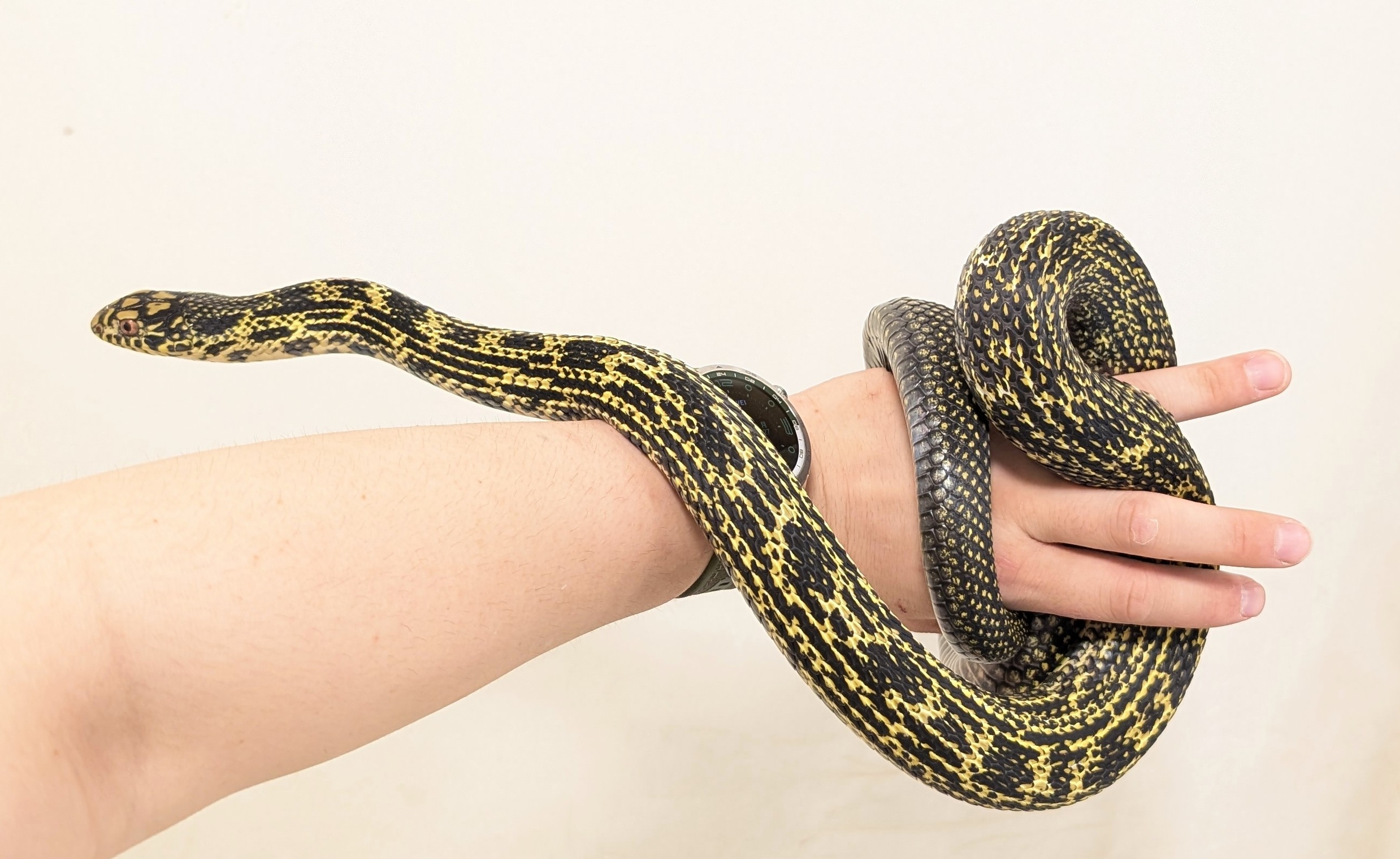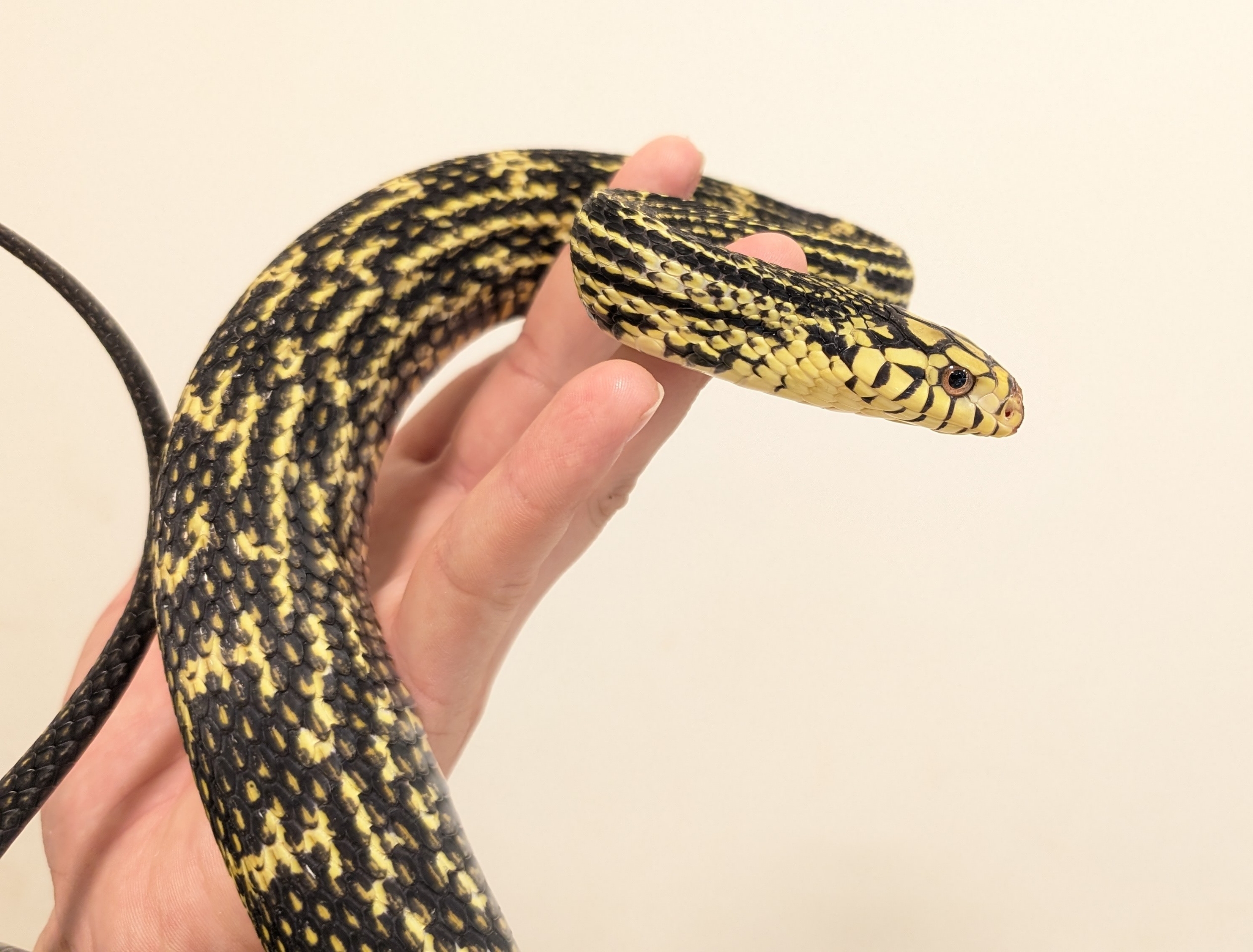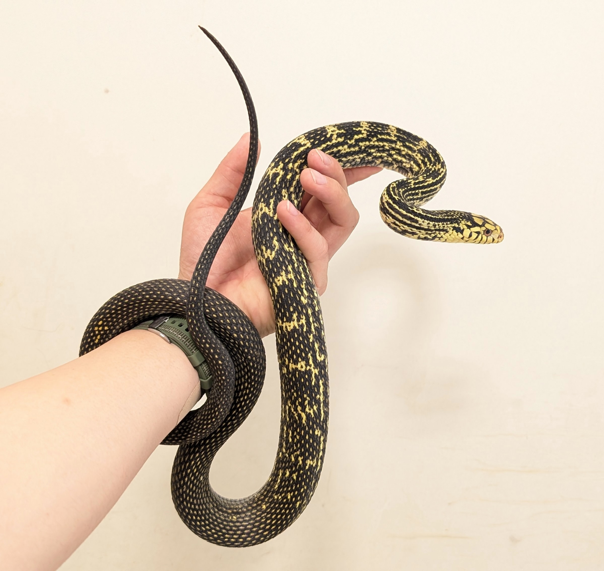 通常黄色のボディに黒の模様が入り、メリハリの利いた体色がかっこよくて人気ですが、アルビノ個体になると神々しさがありますね