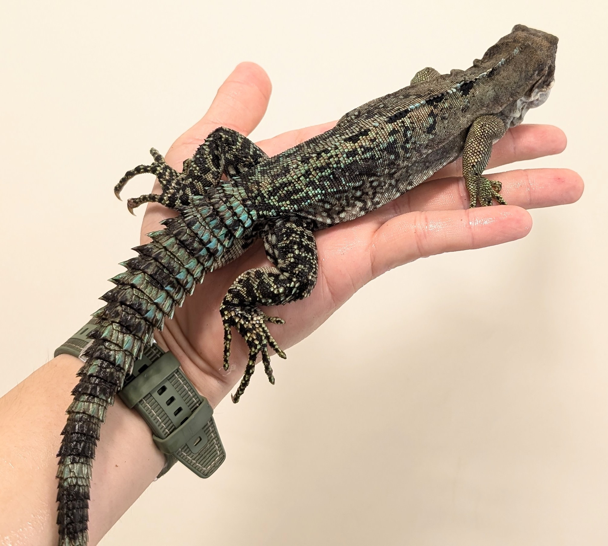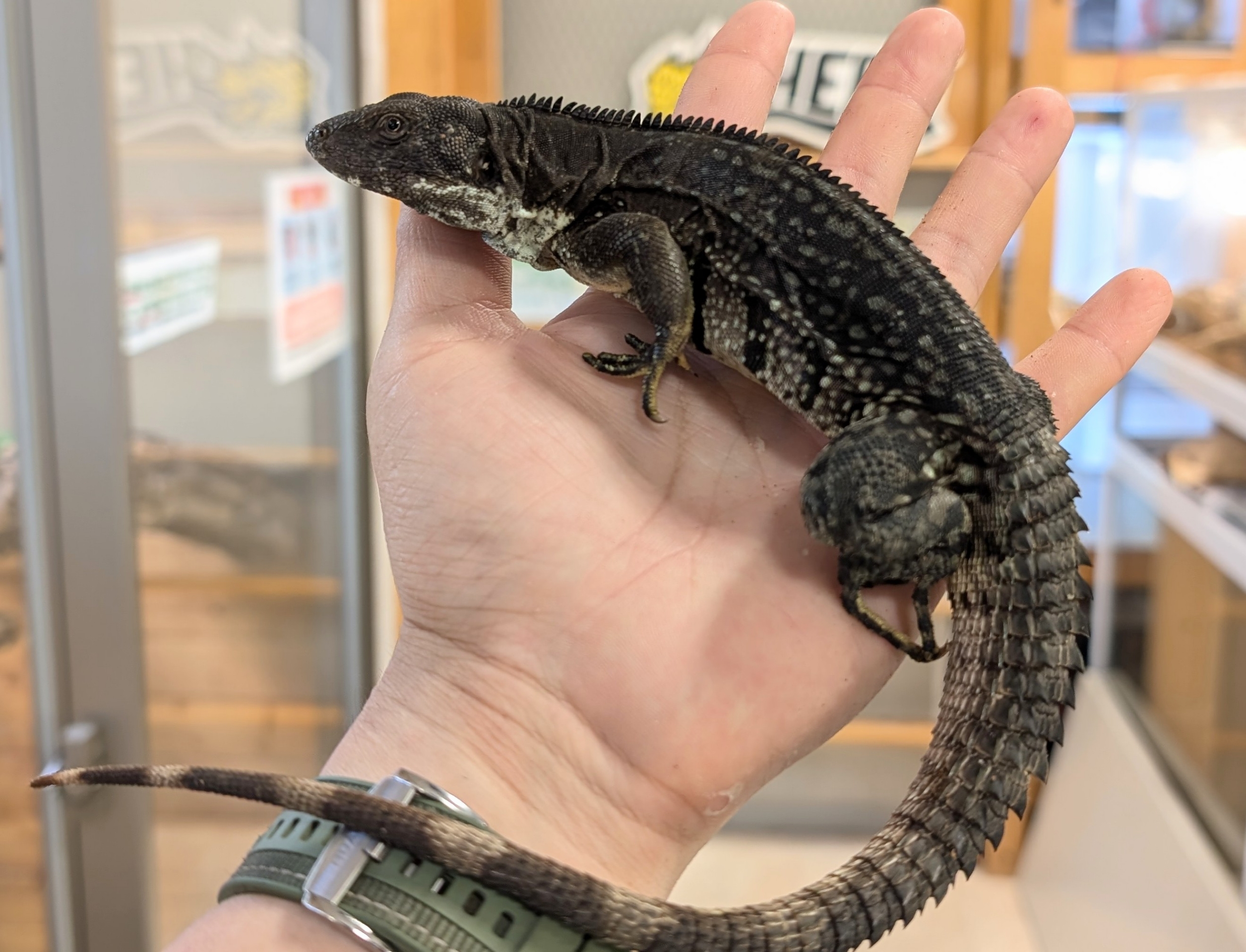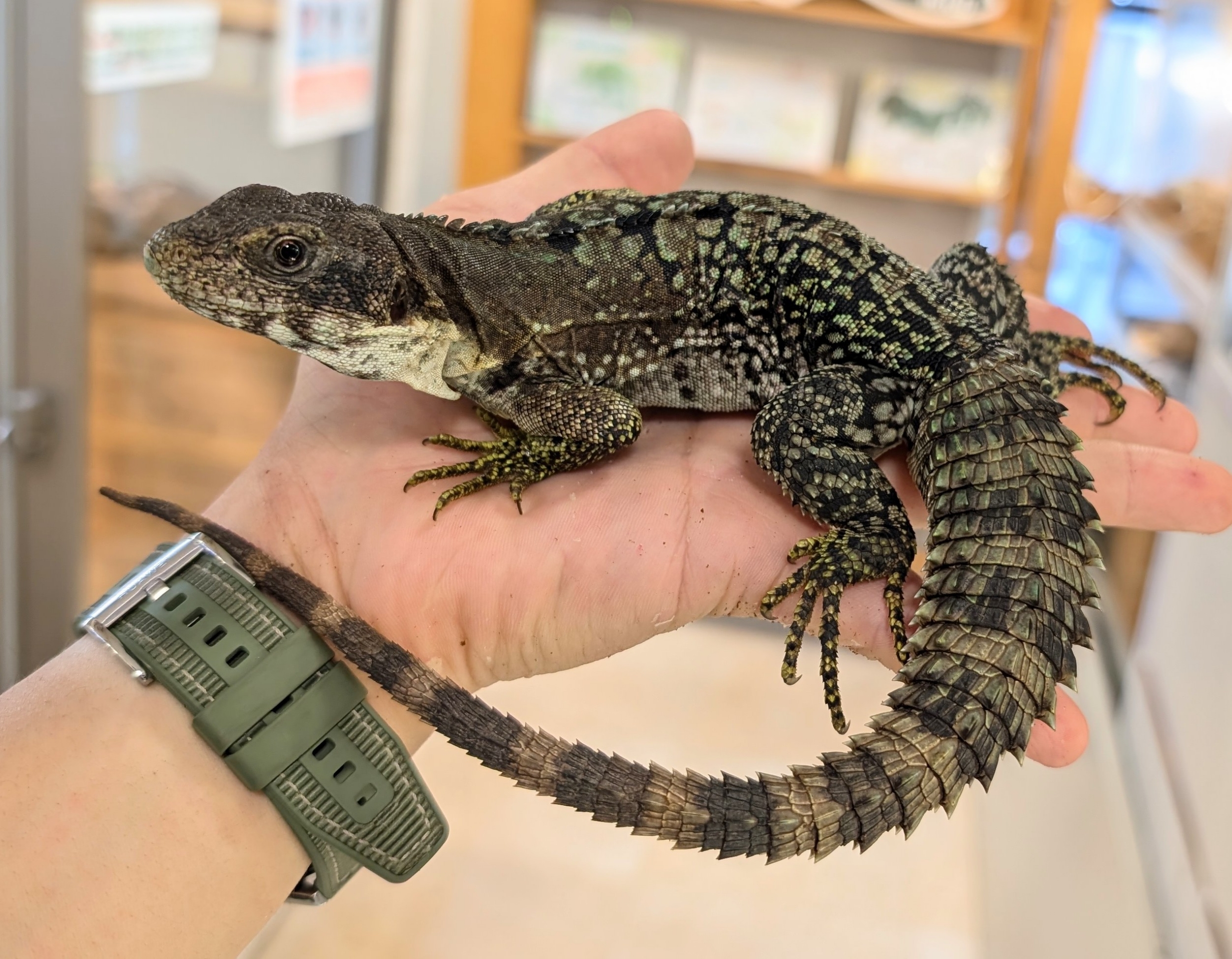 やや小型のトゲオイグアナでオスは体色に黒・青・黄が入りとても美しいです✨️