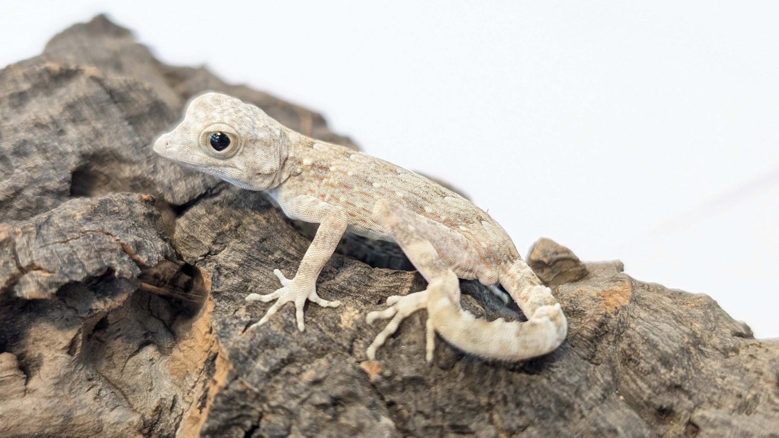 エサはイエコを食べておりケージ内をちょこちょこ動き回ったり、尻尾を振ったりと愛嬌のあるヤモリです