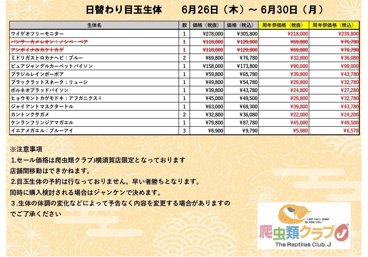 【横須賀店周年祭開催中:26日からの日替わり目玉生体】