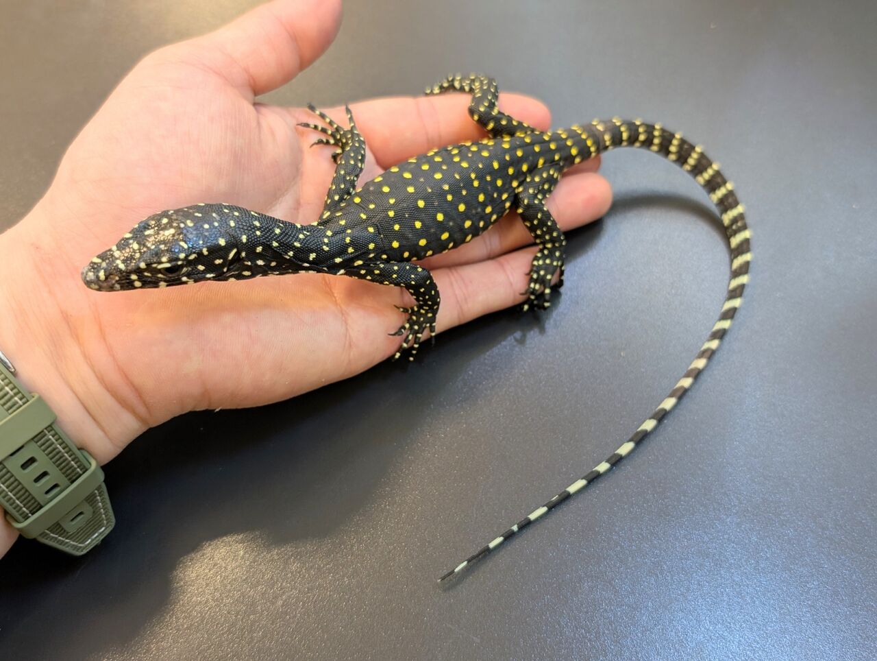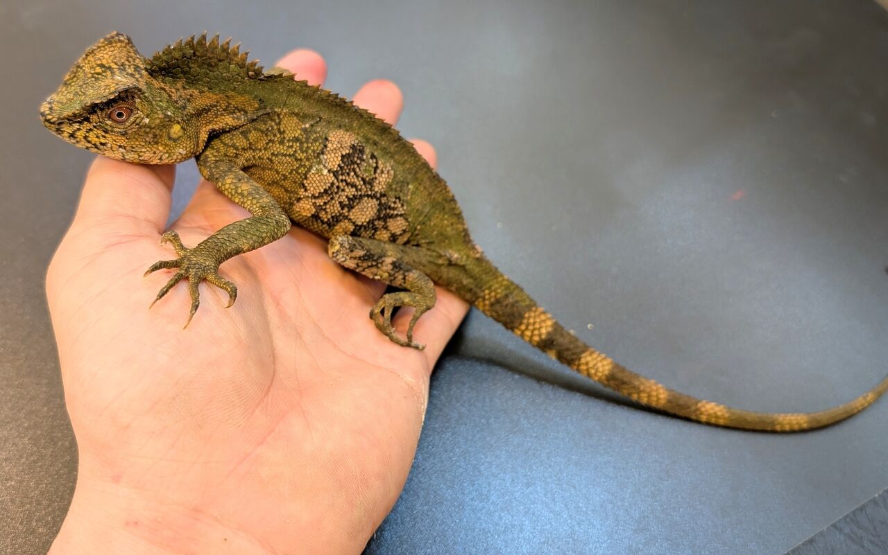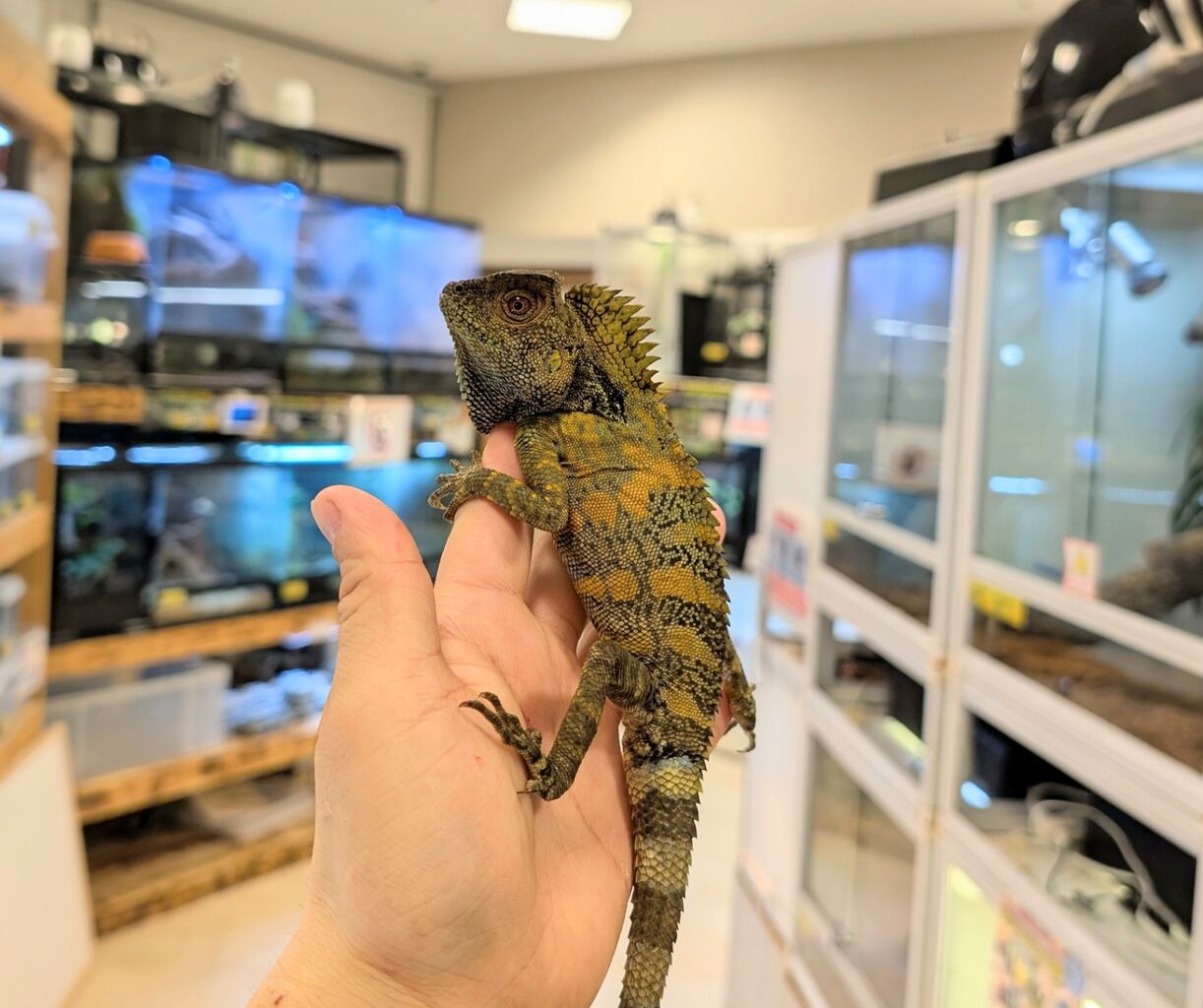 サイズはまだ小さいベビーですが、エサ食いも良くコオロギなどバクバクと食べております