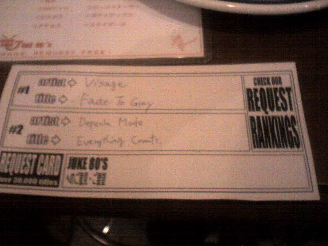Depeche Mode、Duran Duranなんかをかけてもらいました。