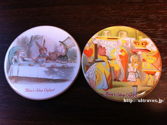 (写真はOxfordのアリス・ショップで購入したコースター2種。画像はクリックで拡大。)