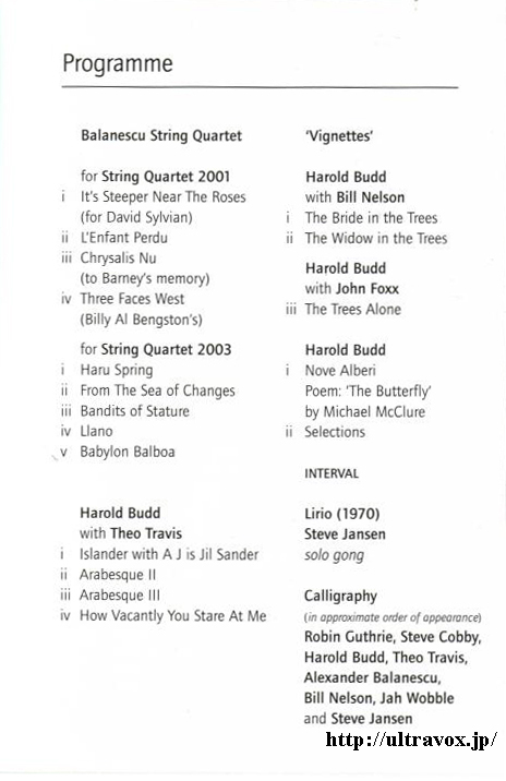 2005 英国旅行記(14) 〜Harold Budd farewell LxIxVxE Report〜