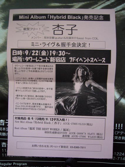 2006/09/22(Fri) 杏子 インストアイベントMini Album「Hybrid Black」発売記念ミニライブ&握手会@タワーレコード新宿店