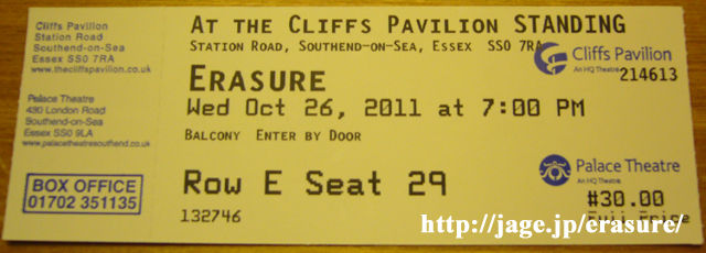 ・2011 英国旅行記(13) 〜26/10/2011 Erasure @Cliffs Pavilion, Southend, UK LxIxVxE Report〜