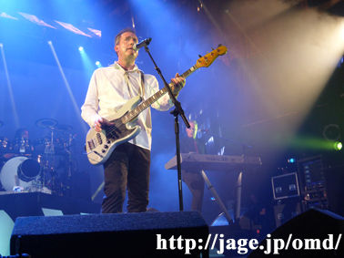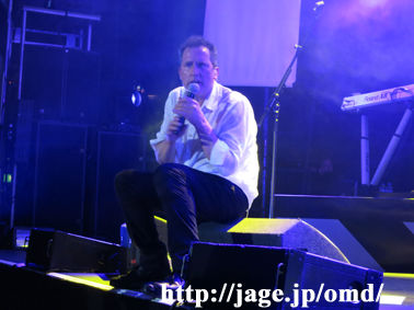 お礼を言ってから、大ヒット曲"Enola Gay"を演奏して本編は終了。
