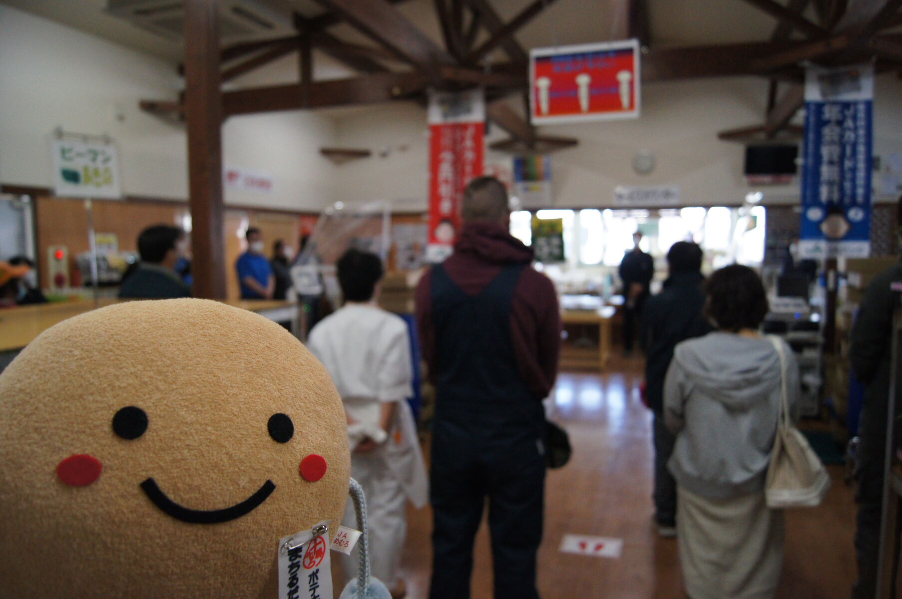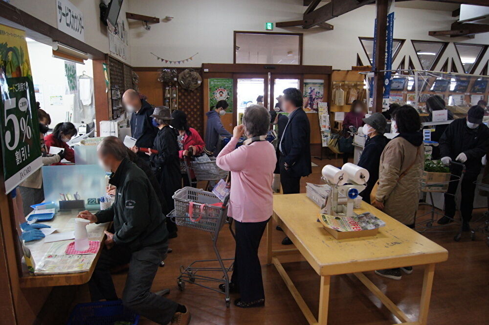 店内は苗を購入される方や、アスパラを発送するお客様で