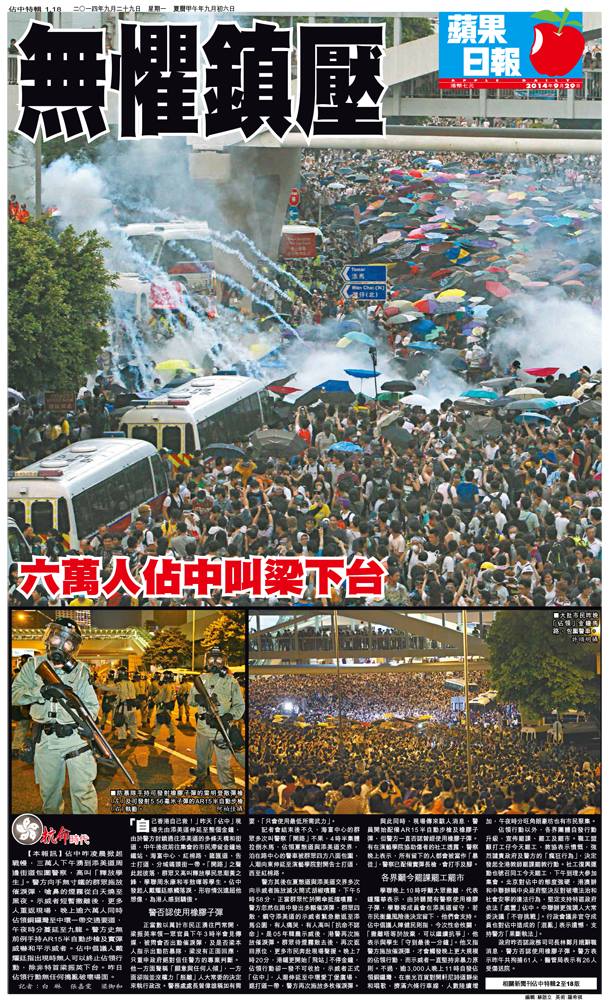 9·î28Æü01:40a.m.¤Ë¤Ï¡ÖÀêÎÎÃæ´Ä/Occupy Central¡×·×²è¼Â¹Ô¤¬Àë¸À¤µ¤ì¤ë¡Ê佔ÎÎÃæ´Ä¡¢Àµ¼°啟ư¡Ë¡£³ØÀ¸¤¿¤Á¤ËÂç¿Í¤¿¤Á¤â²Ã¤ï¤ë¤³¤È¤Ç¿Í¿ô¤¬¤µ¤é¤ËËĤì¾å¤¬¤ê¡¢À¯ÉÜÁíËÜÉô¼þÊÕÆ»Ï©ÀêÎΤò³«»Ï¡£Ìó6Ëü¿Í¤¬½¸¤Þ¤ë¡£